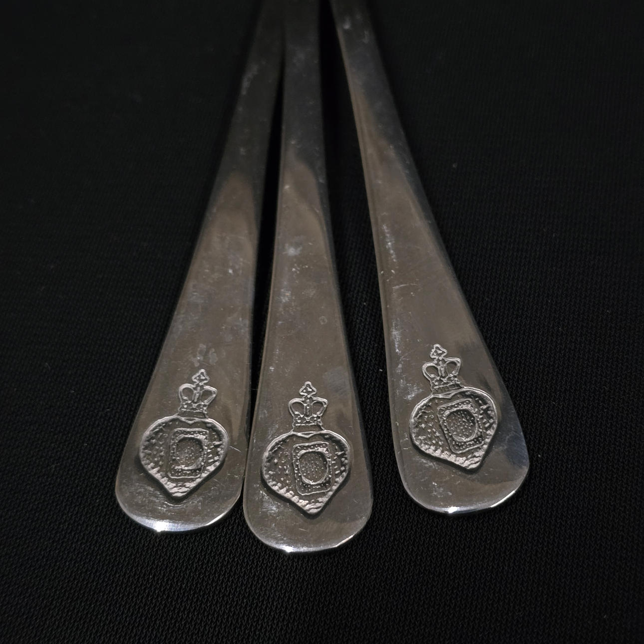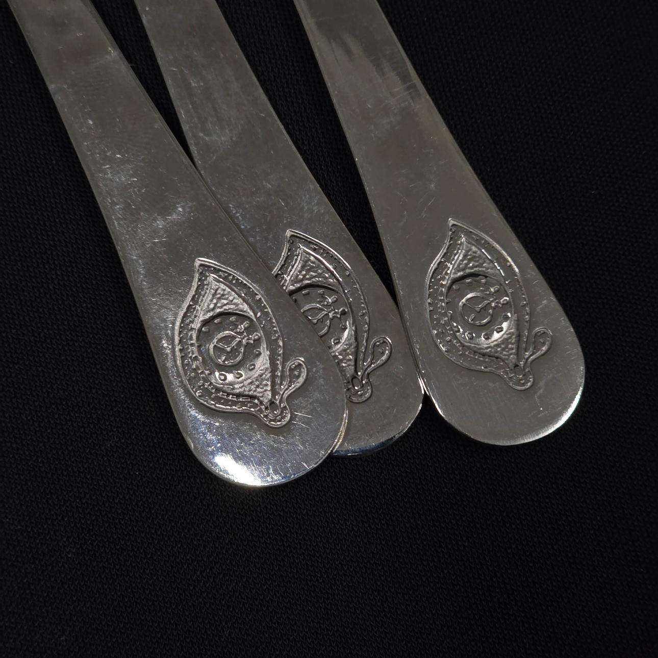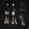 Enthält: 4 Gabeln, 3 Suppenlöffel, 3 Dessertlöffel, 1 Dessertgabel, 5 Fleischmesser, 3 Dessertmesser.
