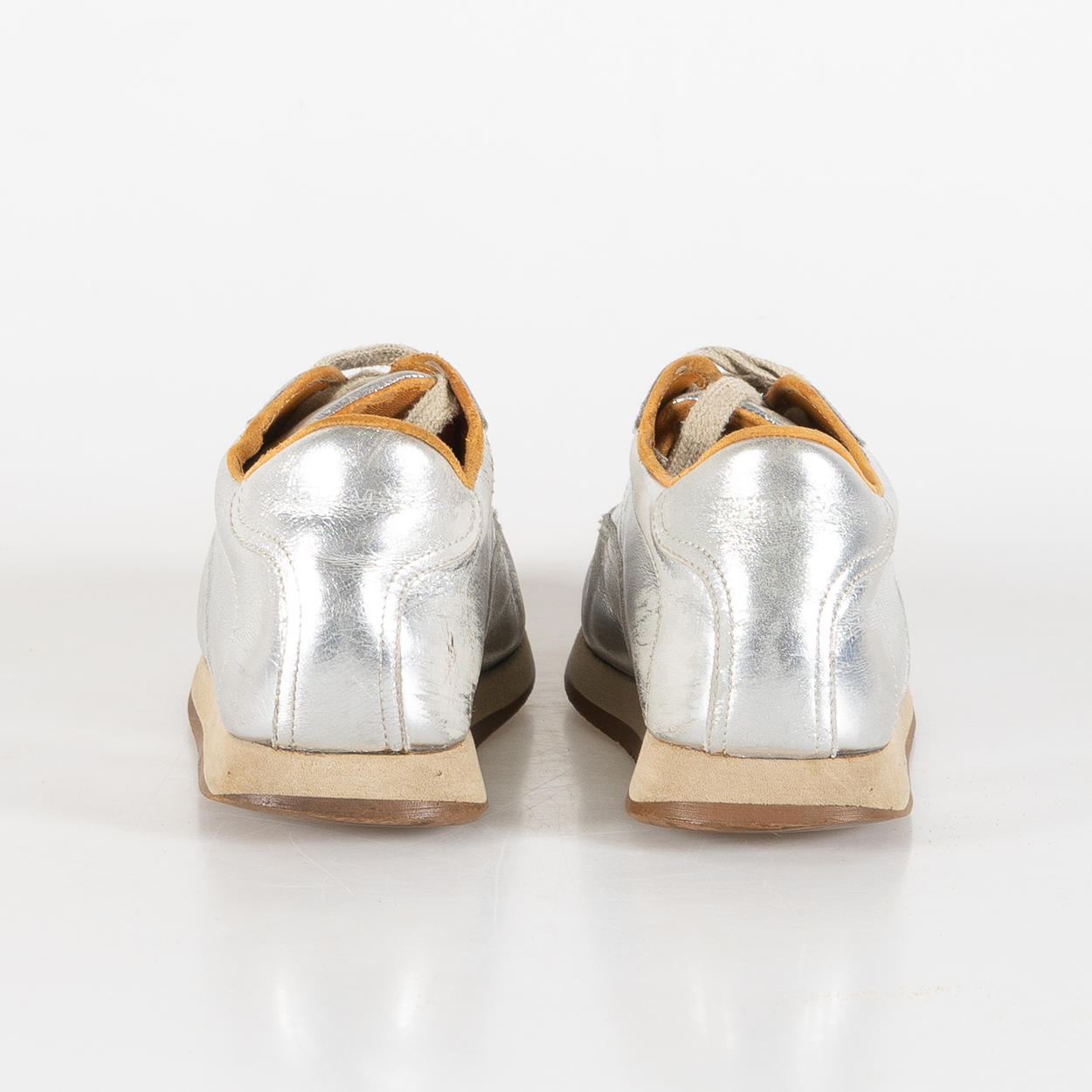 Starke Abnutzung, Löcher und trockene Fersenkappe.