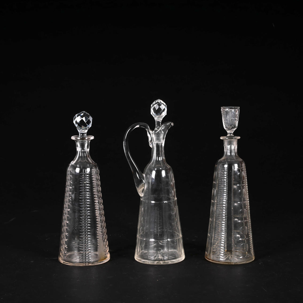 Konische Karaffen mit Schneidschliff 3 Stück, davon eine mit Aufhänger.