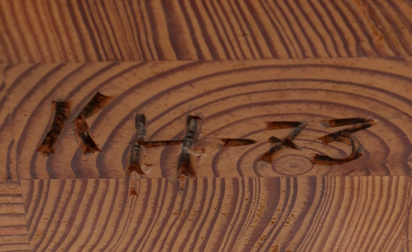 4361935. KAFFEETISCH, KIEFER, monogrammiert, signiert KH -73.