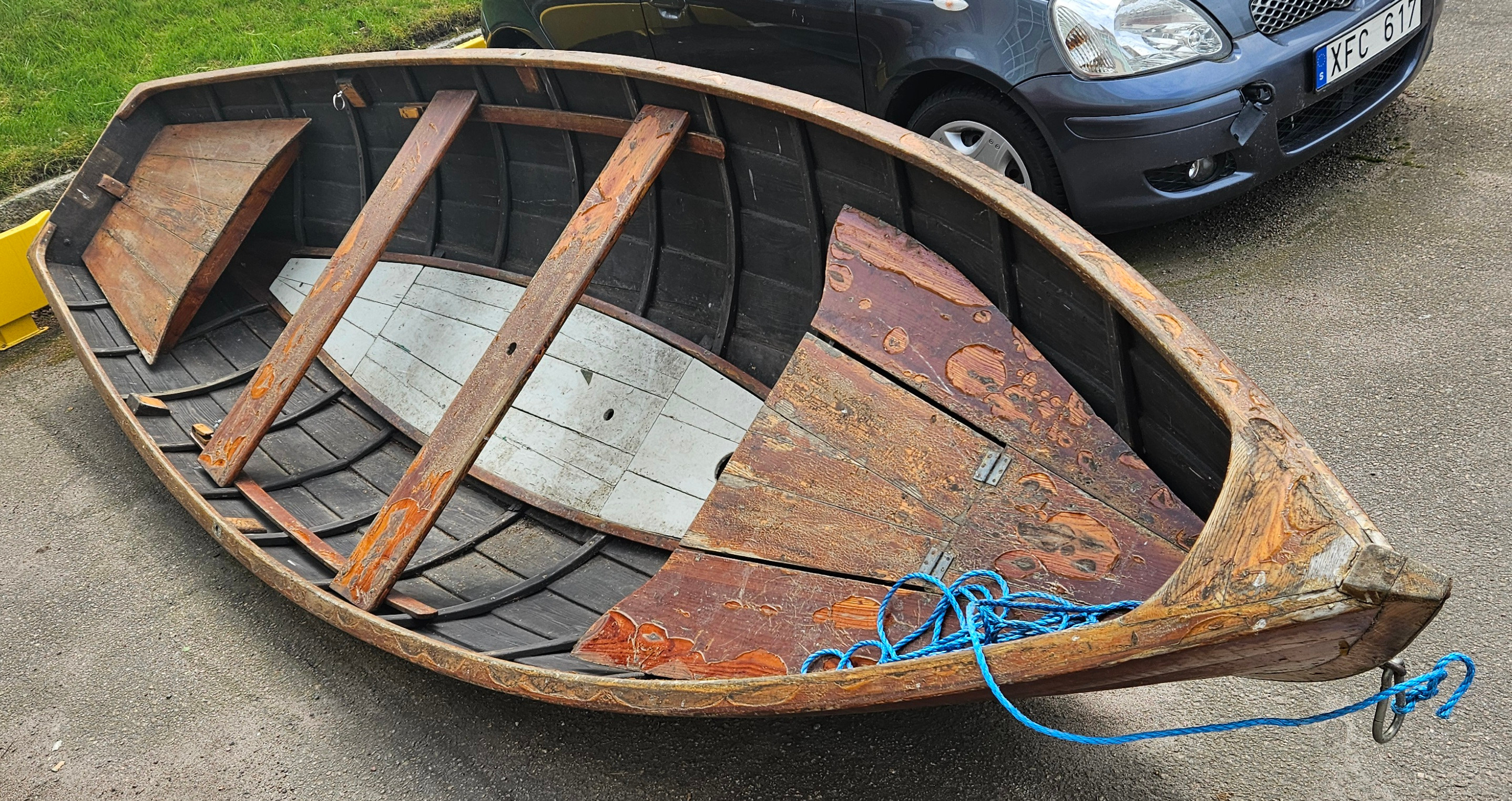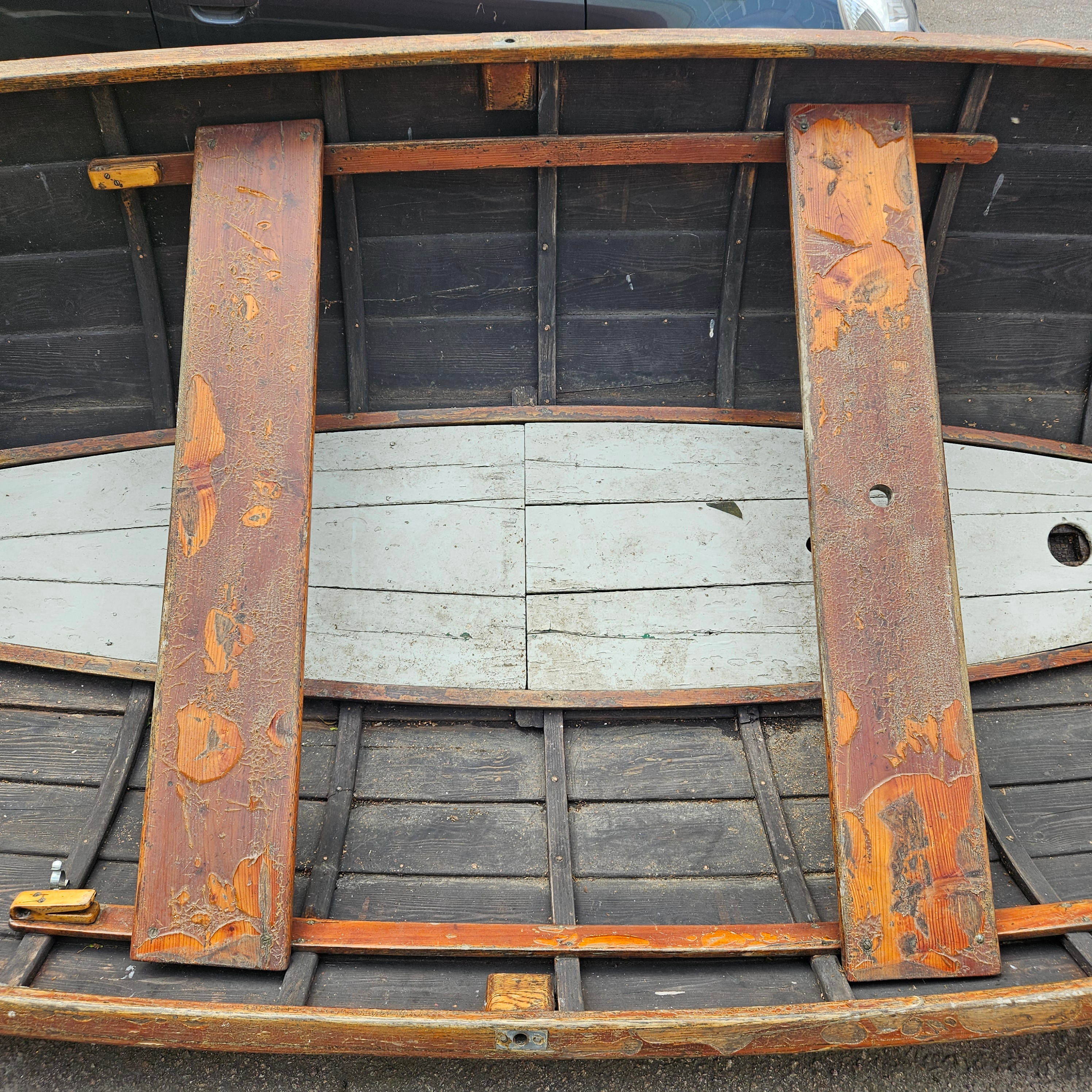 4364525. Ein Holzboot, Segelboot, 20. Jahrhundert.