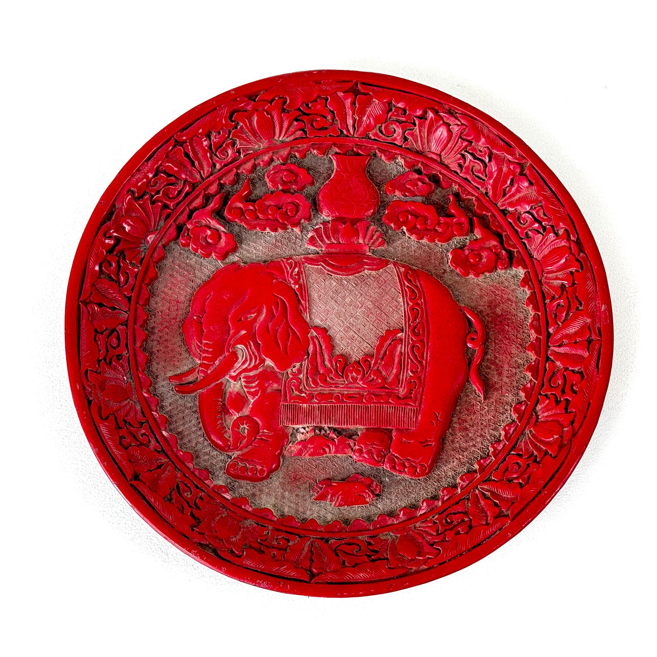 Ein chinesisches Schild vom Typ Zinnober, Dia. 29 cm.