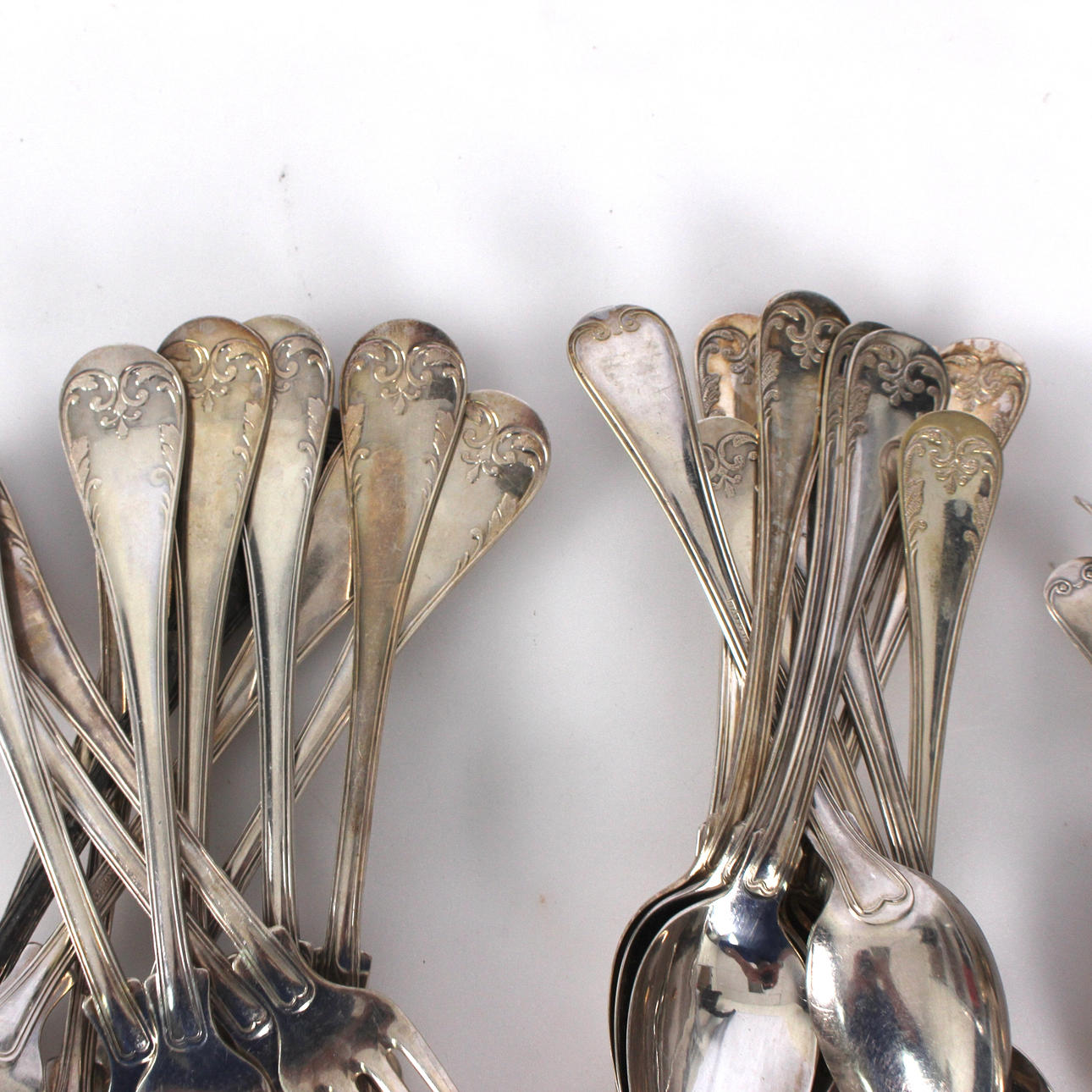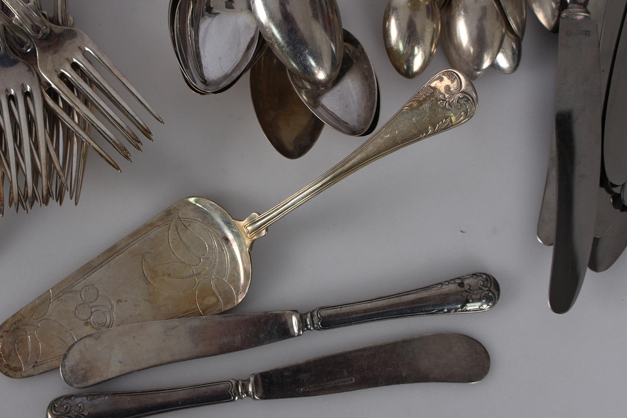 11 Teelöffel, 12 Gabeln, 12 Messer, 11 Esslöffel, 2 Buttermesser und 1 Kuchenschaufel