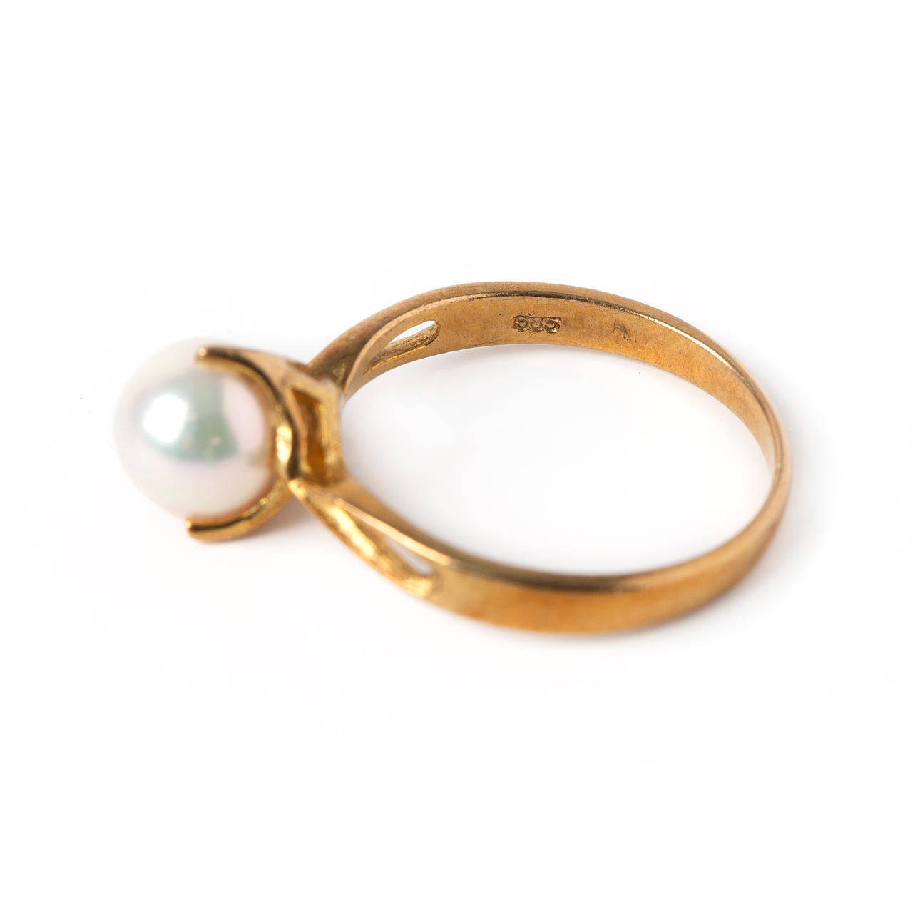 Ein 14-karätiger Goldring mit Zuchtperlen.