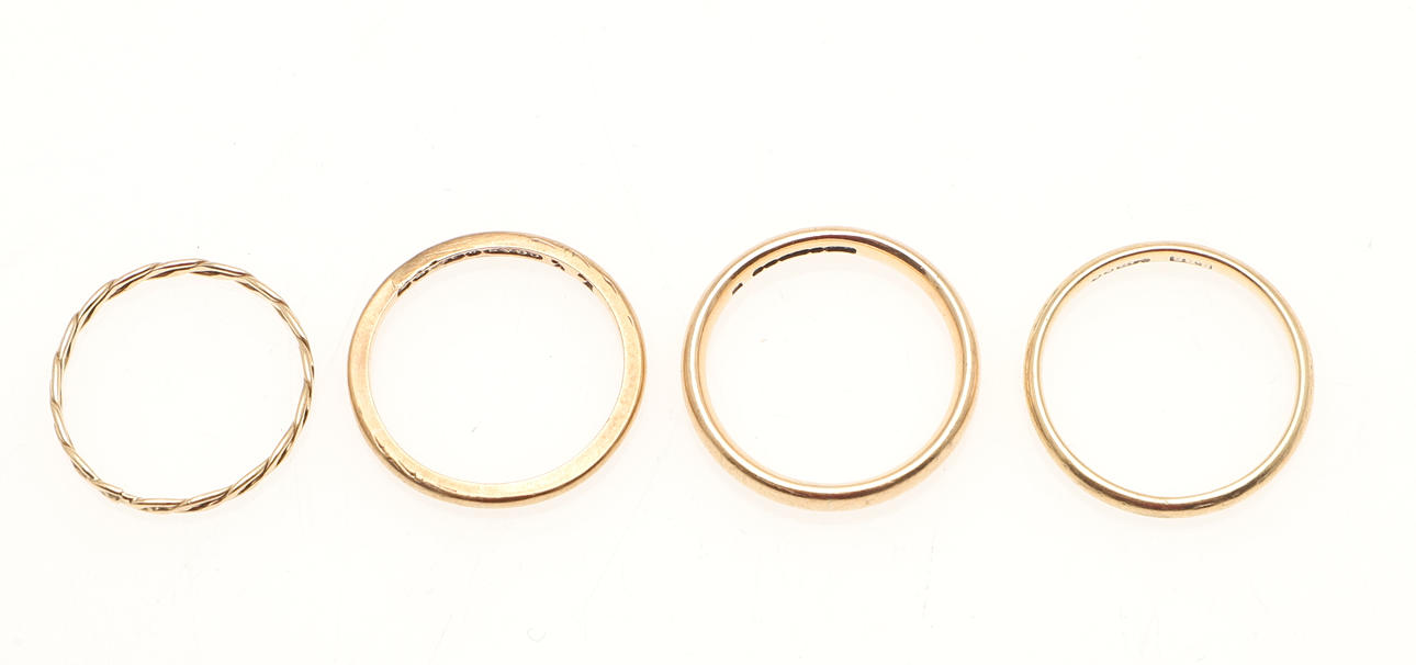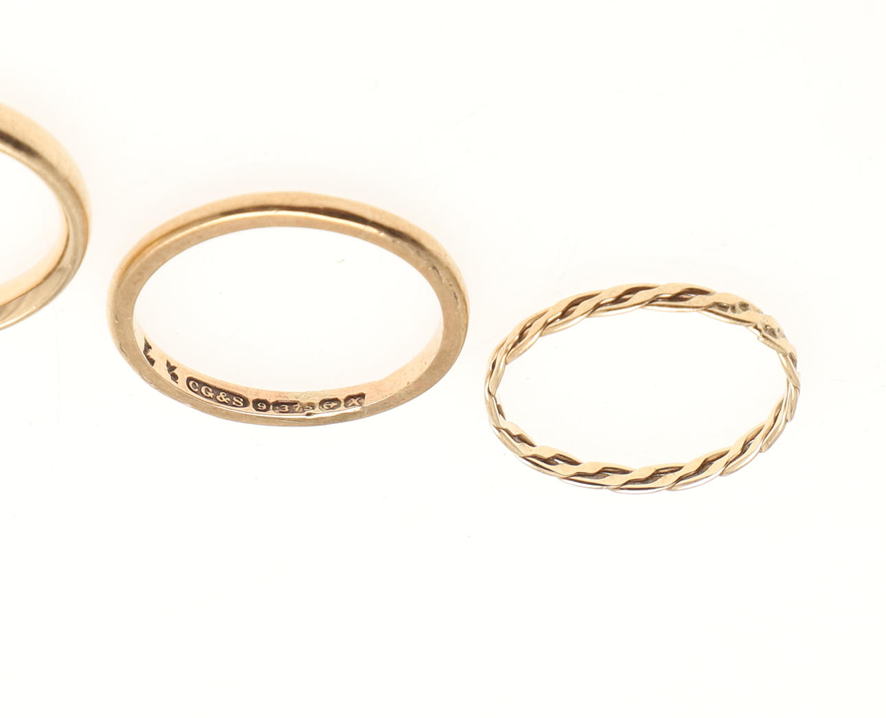 4367711. DREI EHERINGE AUS 9-KARÄTIGEM GOLD.