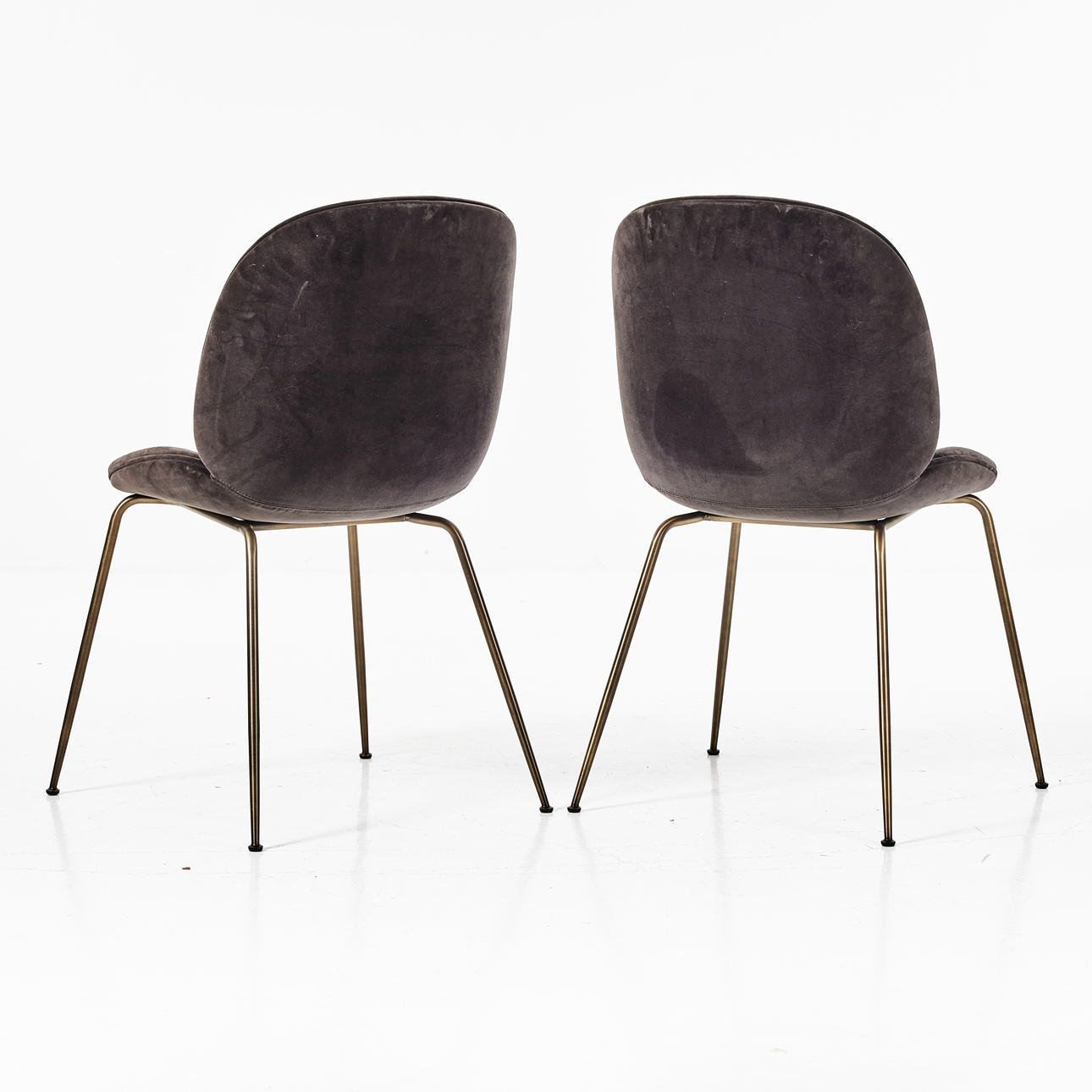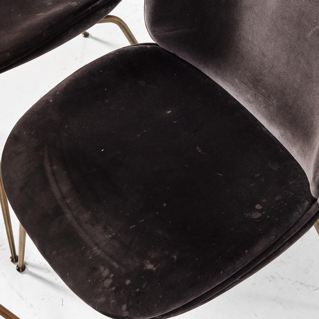 Polster aus grauem Samt, halbmattes Messing, Sitzhöhe ca. 48, Rückenhöhe 88 cm.
