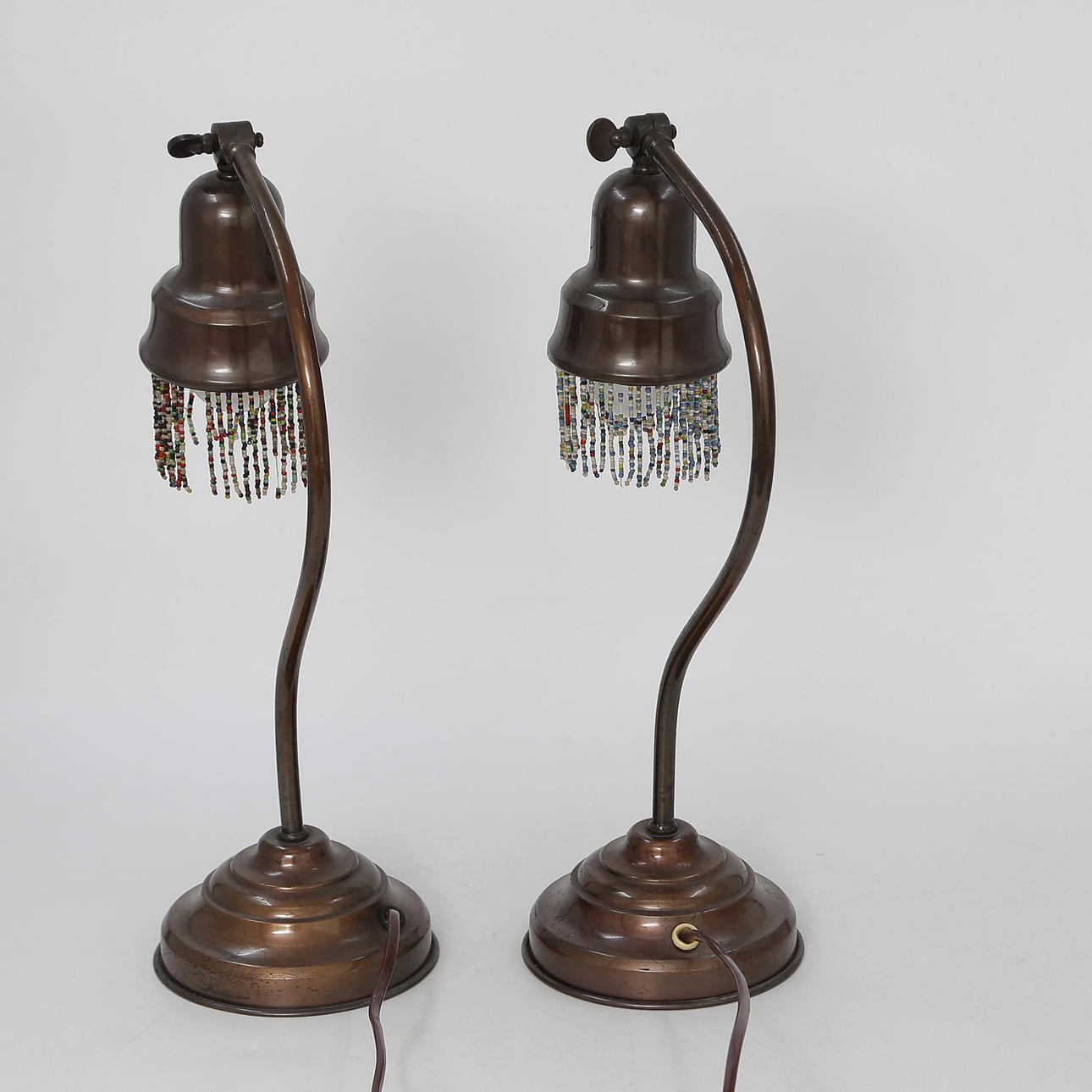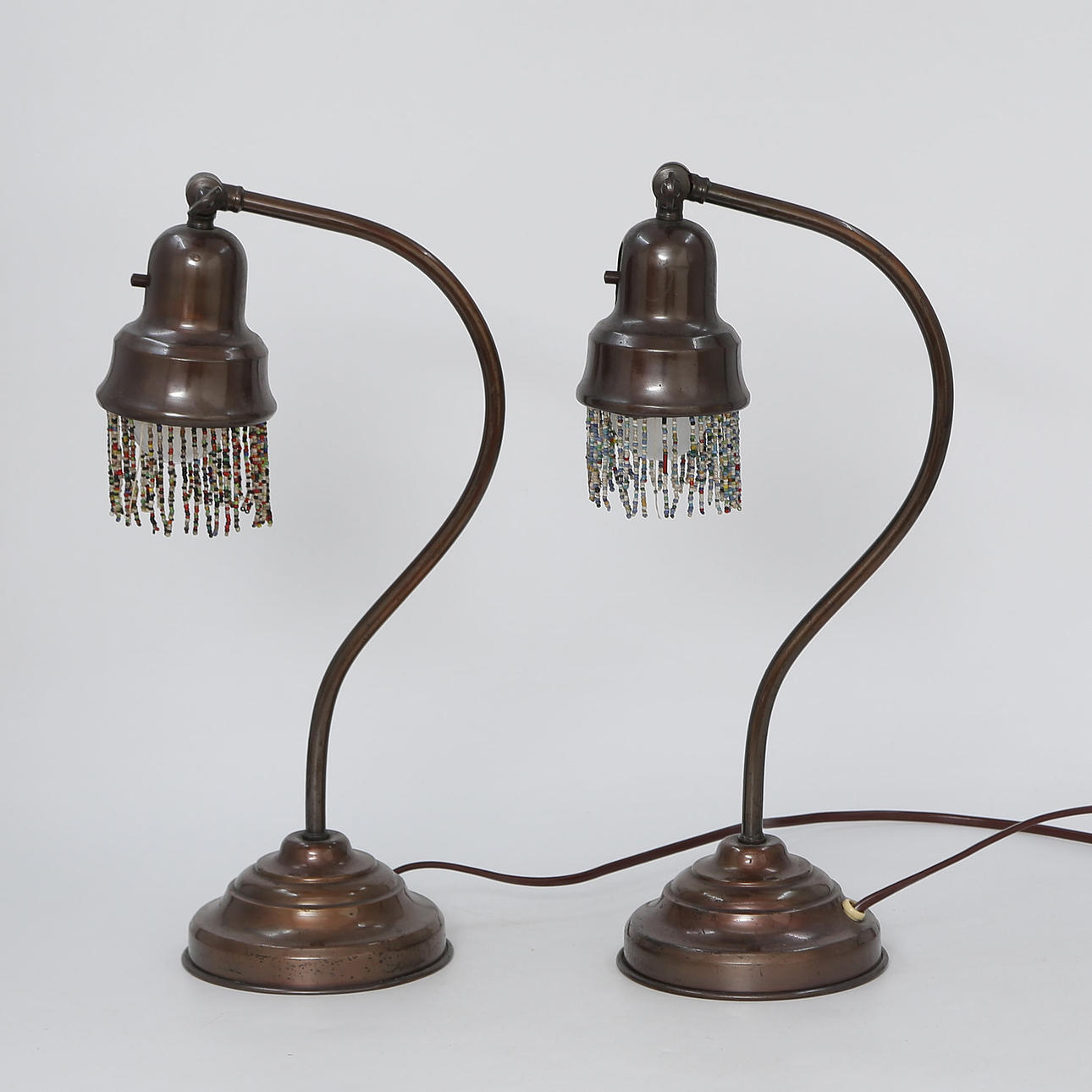 EIN PAAR TISCHLAMPEN MIT PERLENFRANSEN, 20. JAHRHUNDERT.