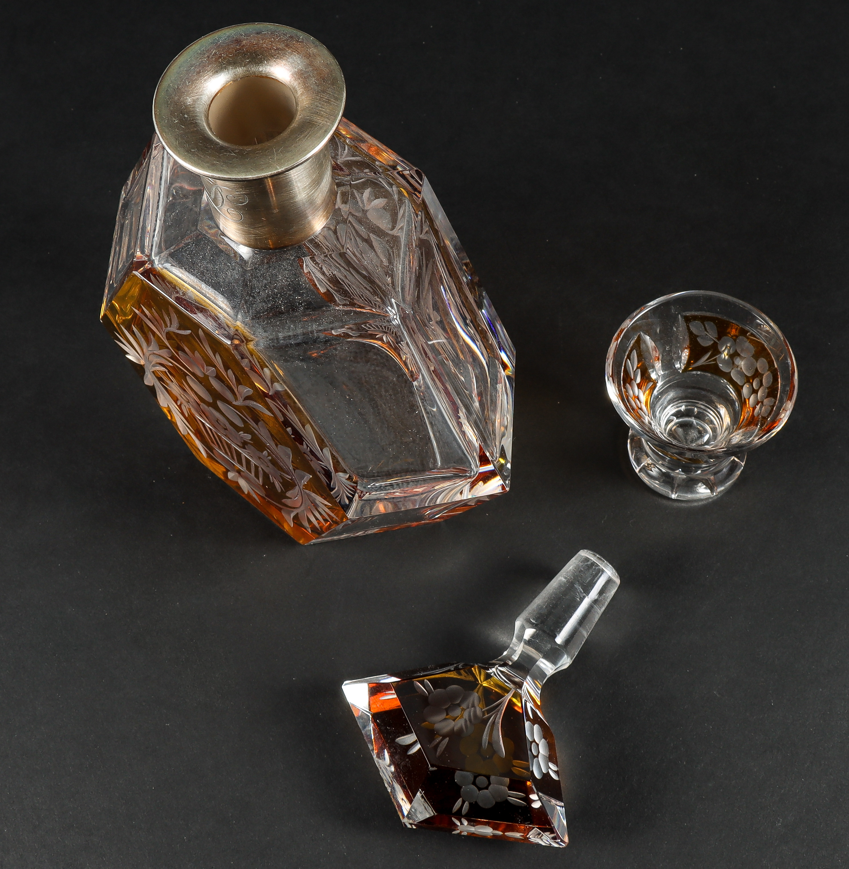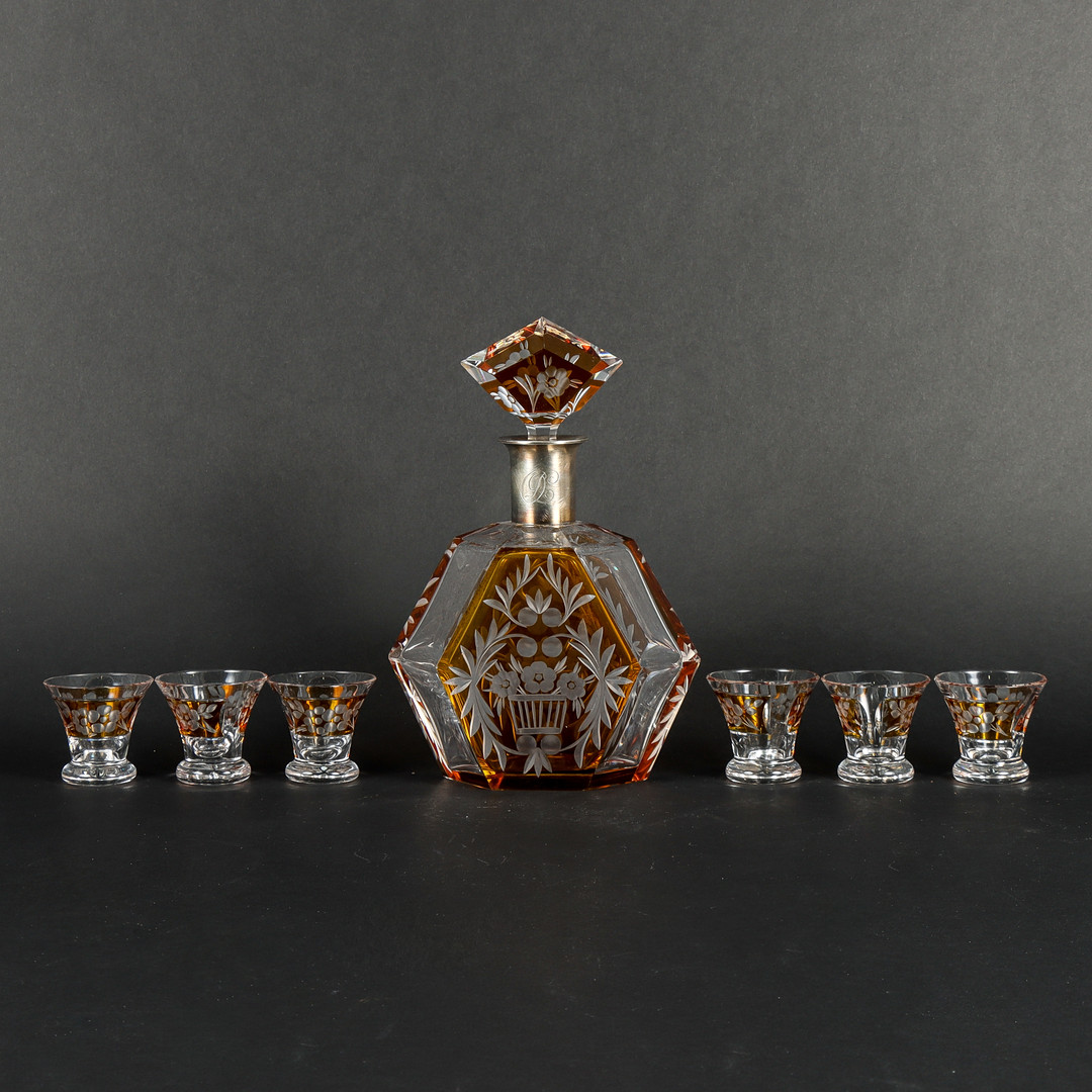 4368162. KARAFFE MIT 6 GLÄSERN AUS BÖHMISCHEM KRISTALL.