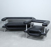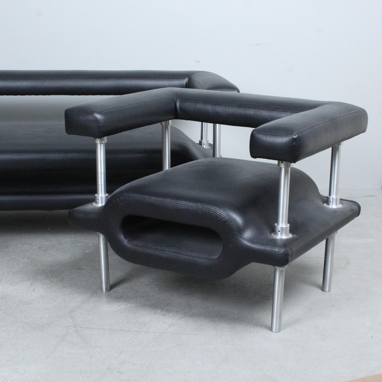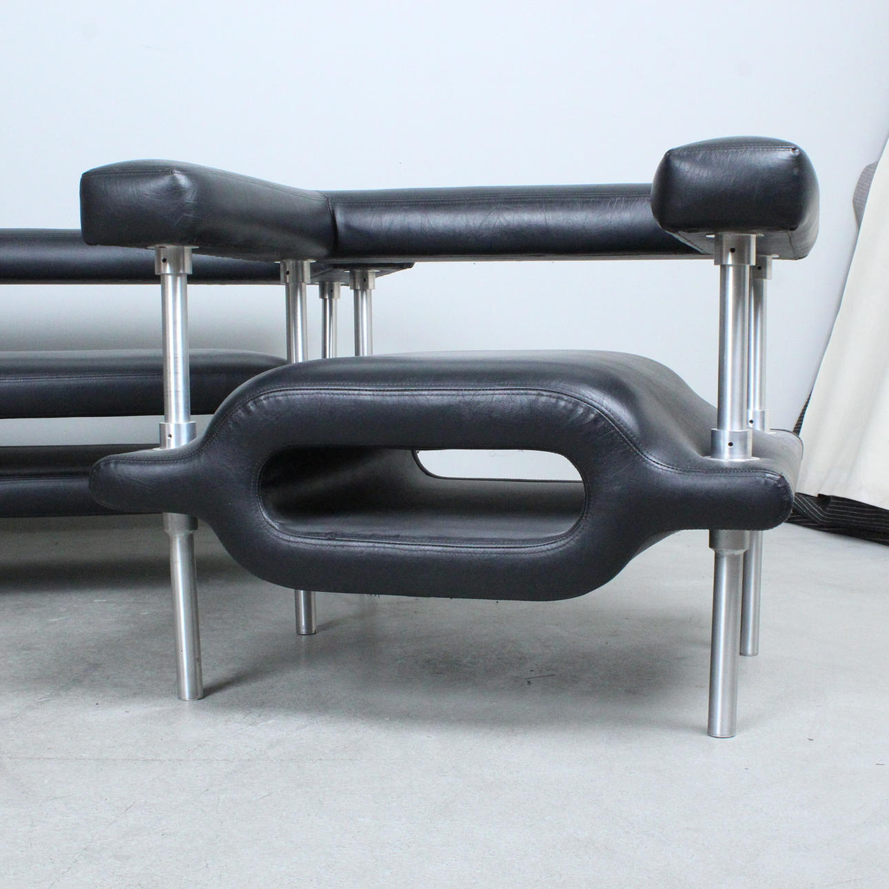 Entwurf von 194, Hersteller: E&Y Co., Ltd.Gestell aus Aluminium, Sitzfläche und Armlehnen aus Polyurethan-Schaum, bezogen mit schwarzem Vinylleder.