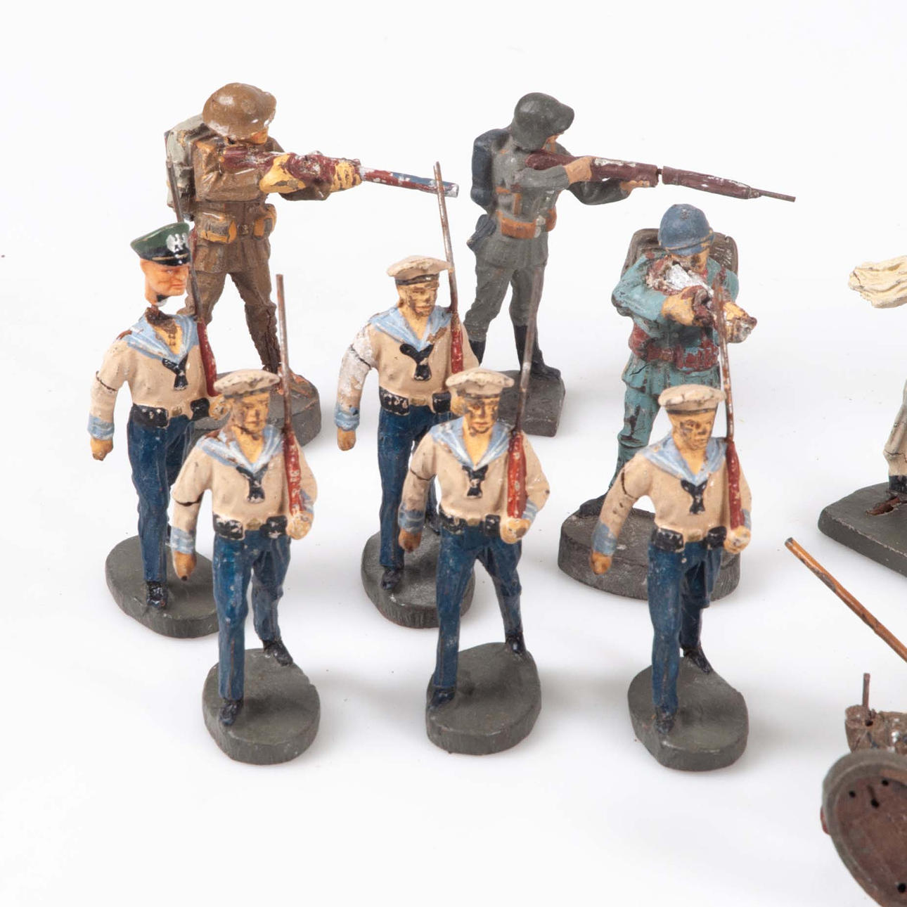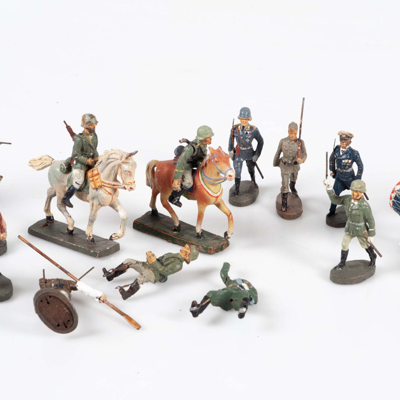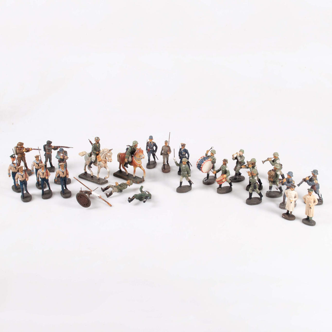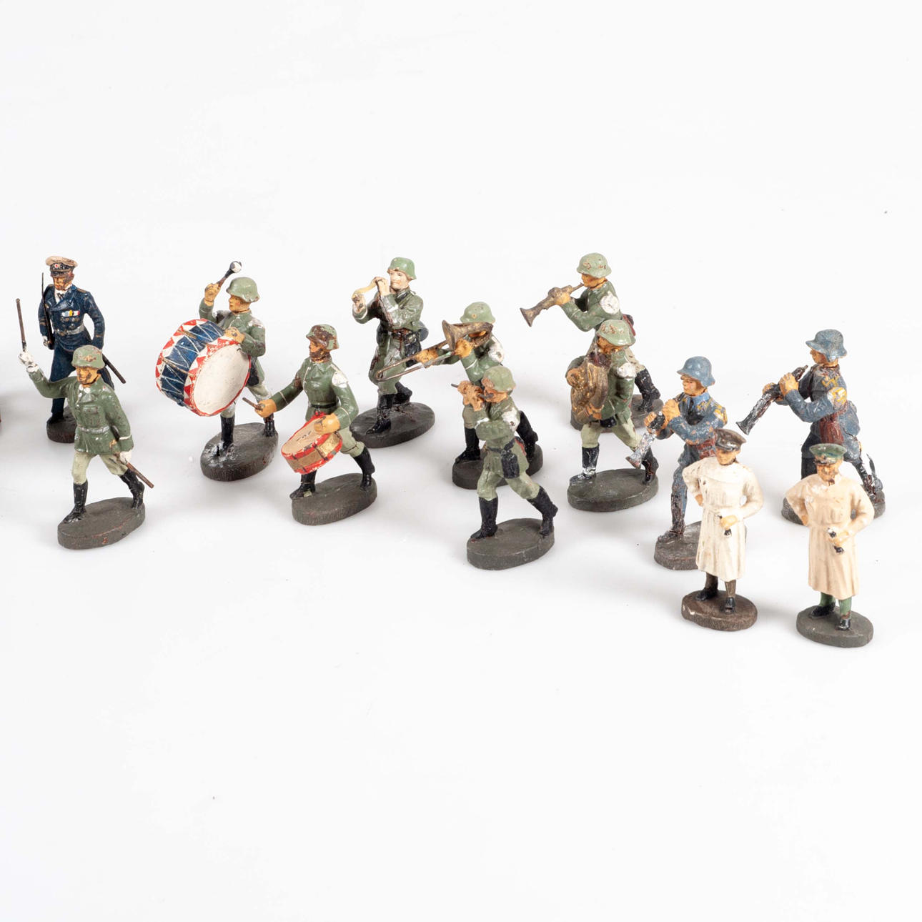4369388. HAUSSER/ELASTOLIN, eine Sammlung marschierender und musikinstrumentspielender Soldaten, 1930er-40er Jahre.