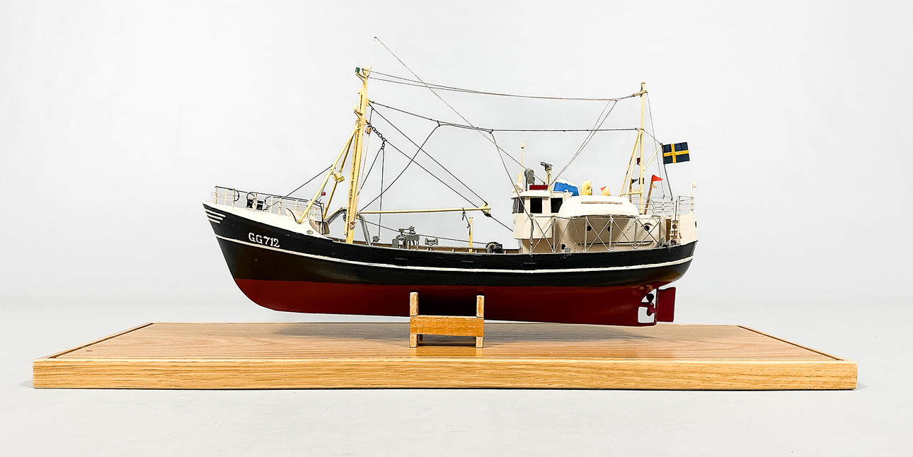 4369469. Modellboot, „Svanesund“, Glasvitrine, 20. Jahrhundert.