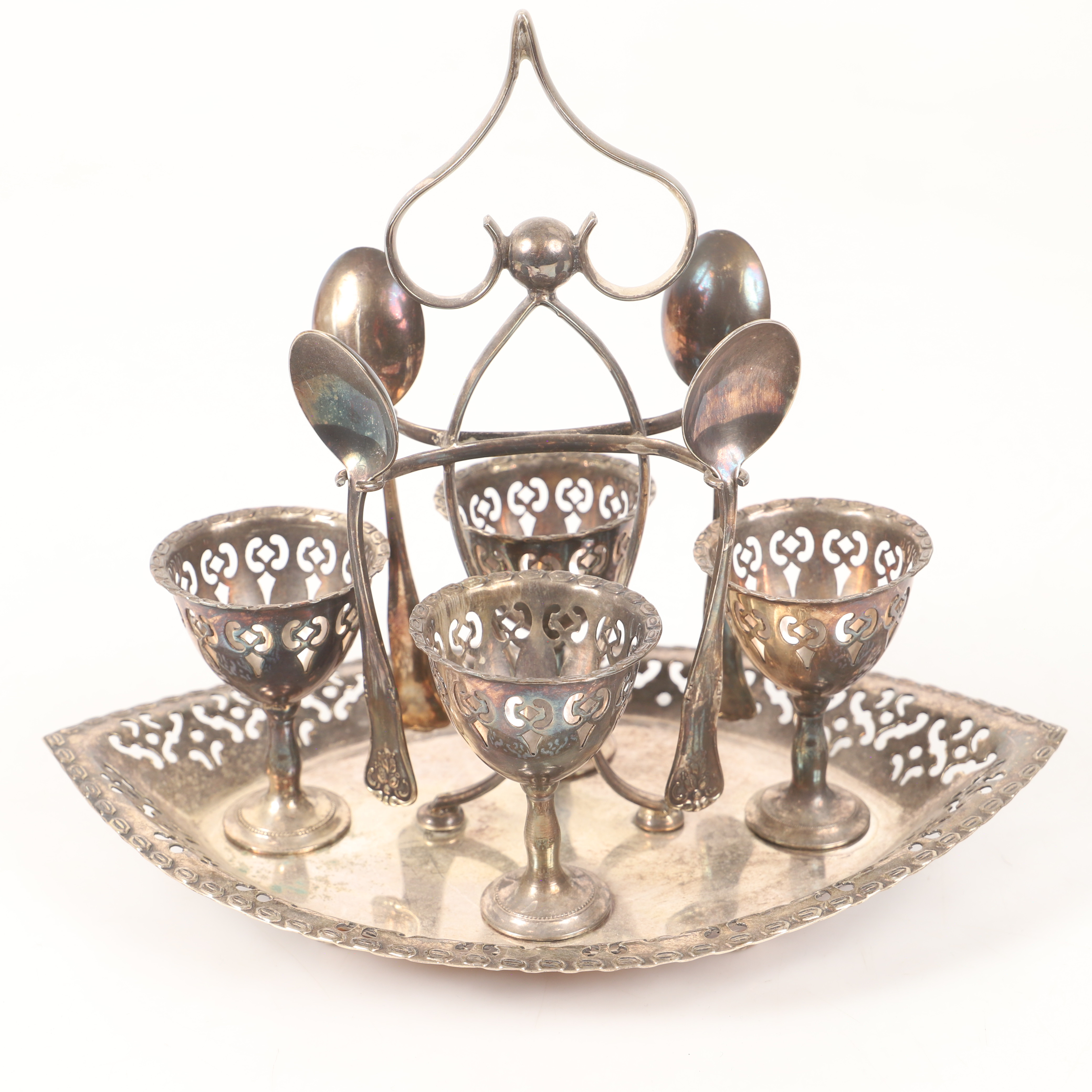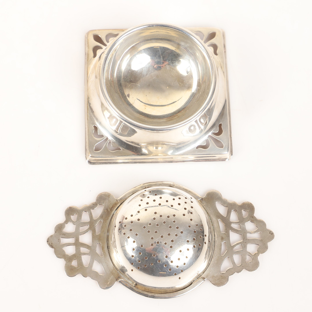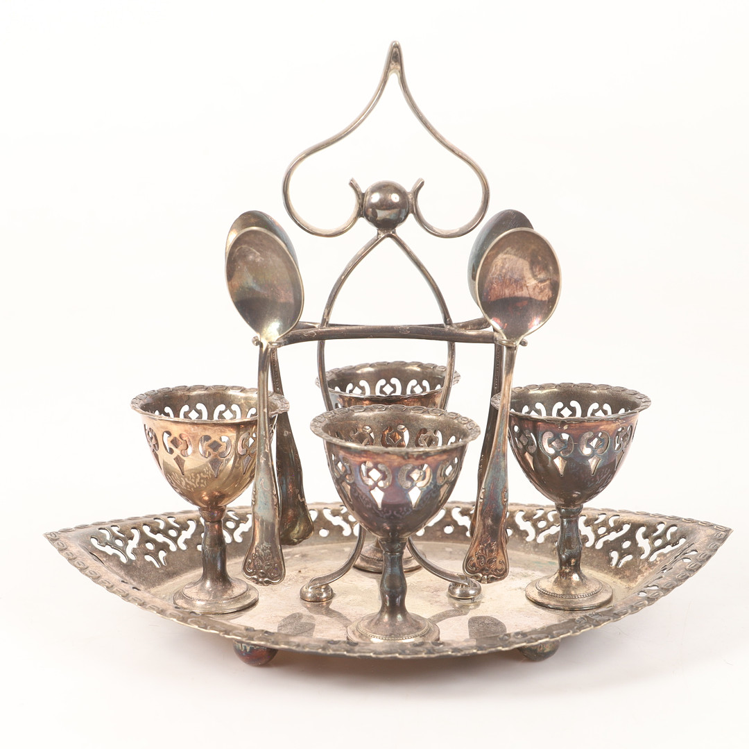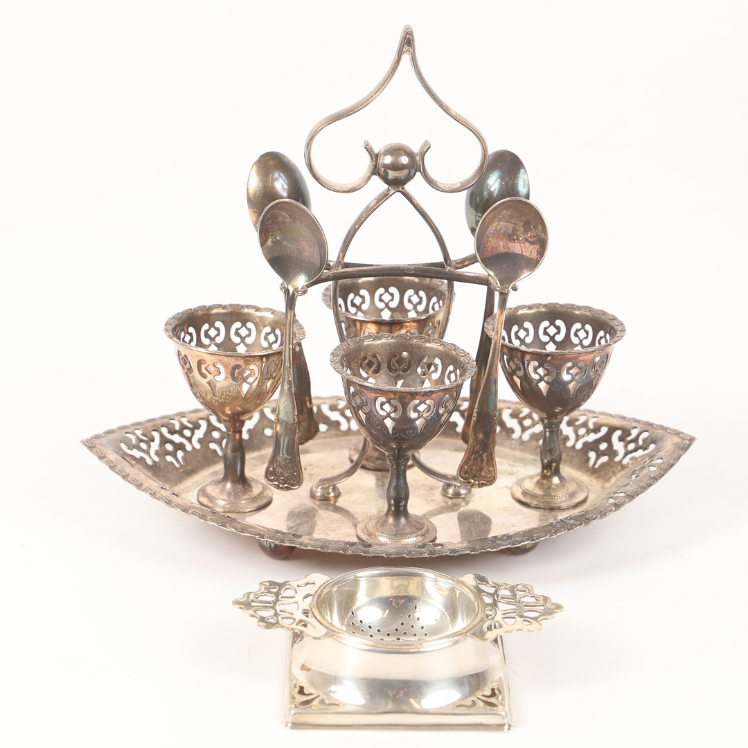 4370394. Eierablage und Teesieb, Neusilber, England.