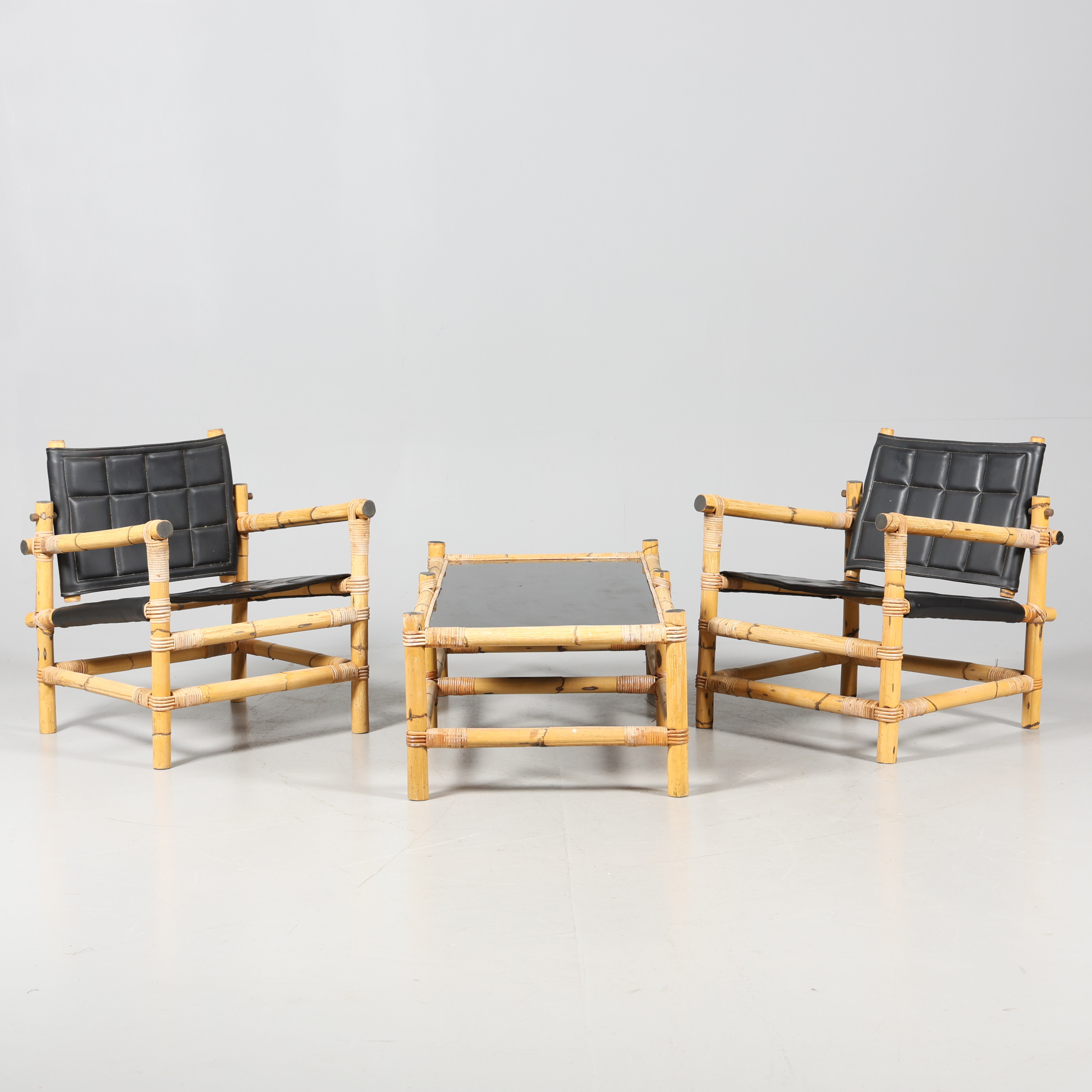 4370807. Ein 3-teiliger Safari-Sitzbereich aus Bambus.