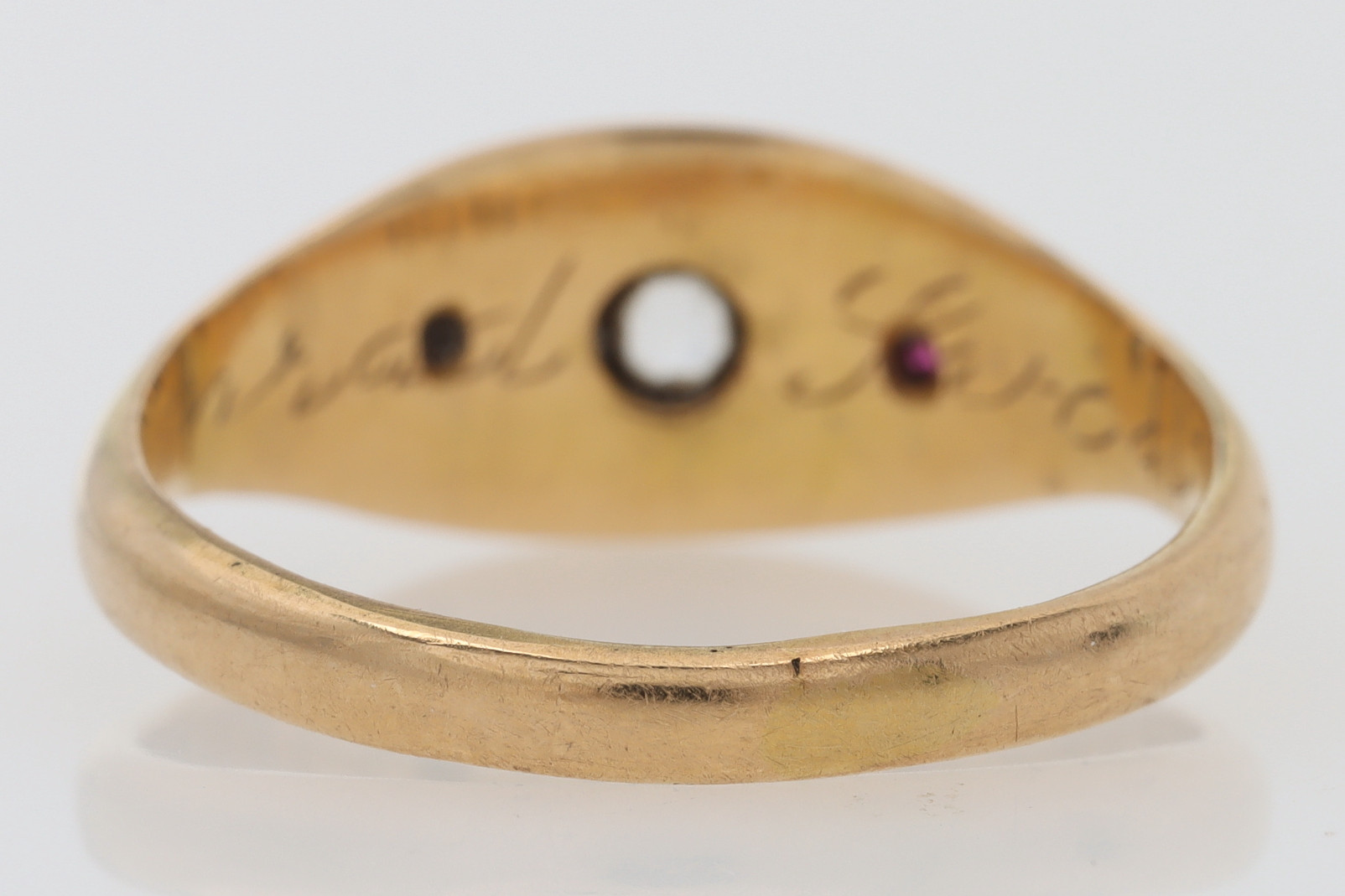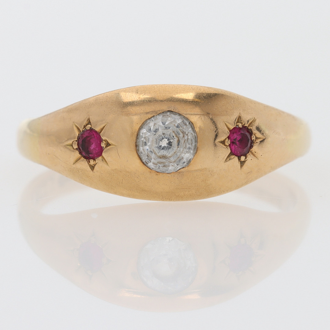 4372127. RING, 18 K Gold mit Topas und Rubinen.