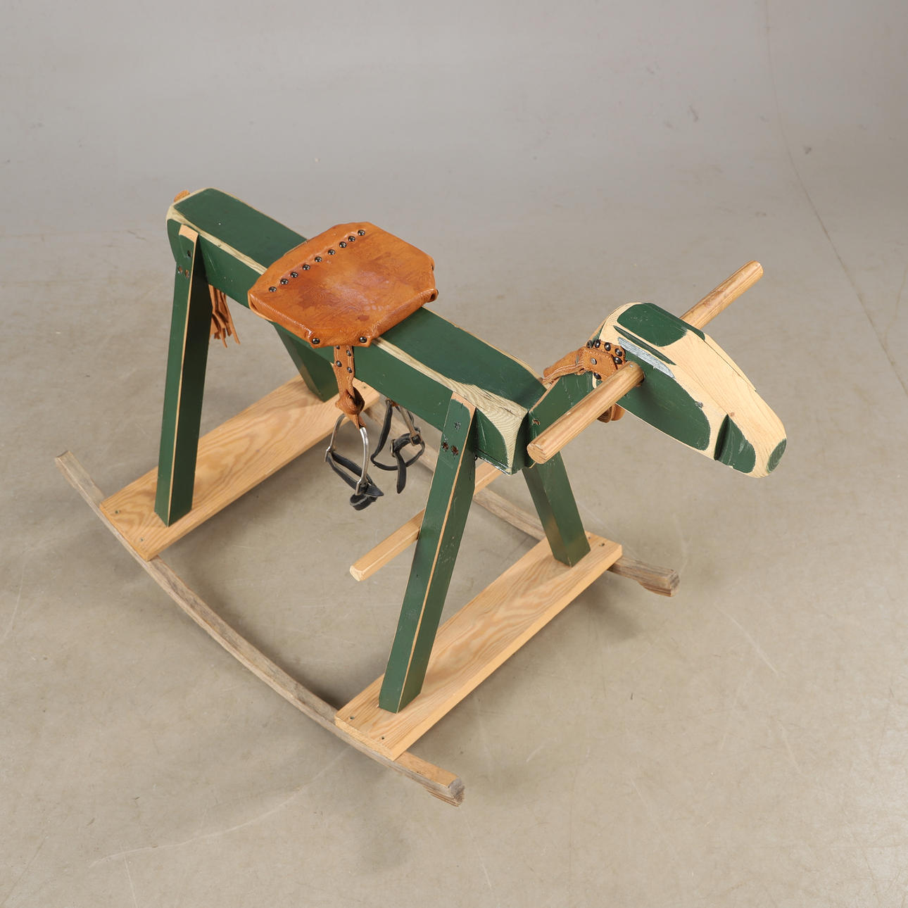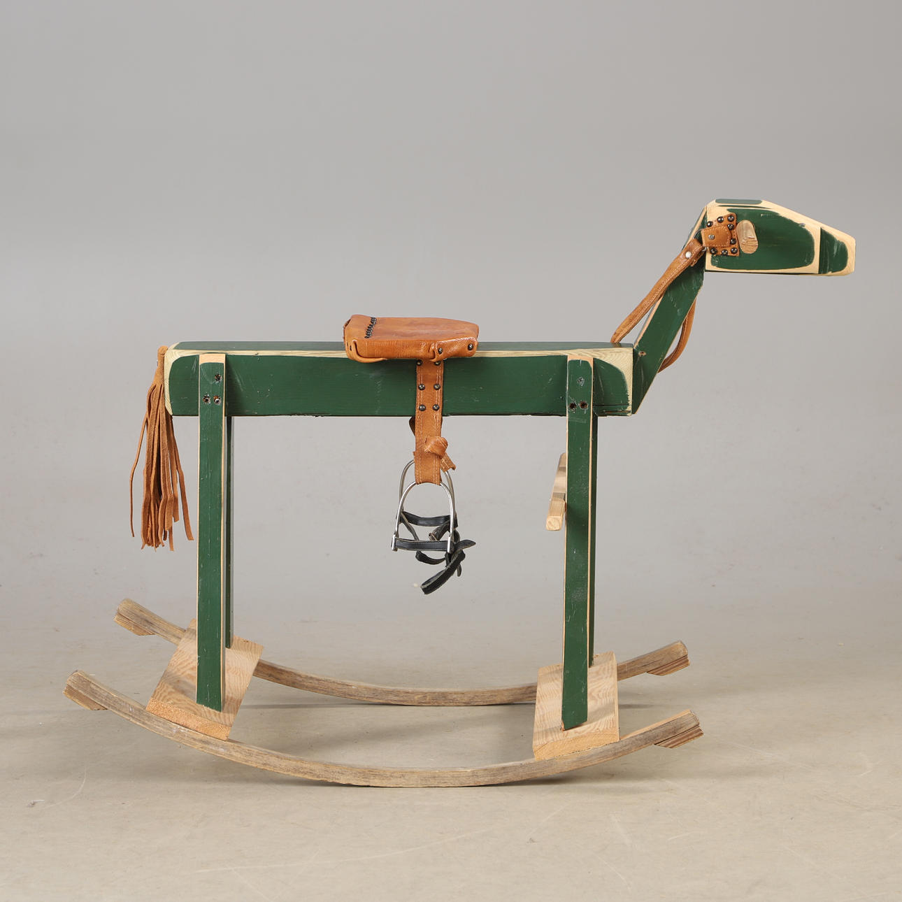 4372499. Schaukelpferd, grün bemalt, 20. Jahrhundert.