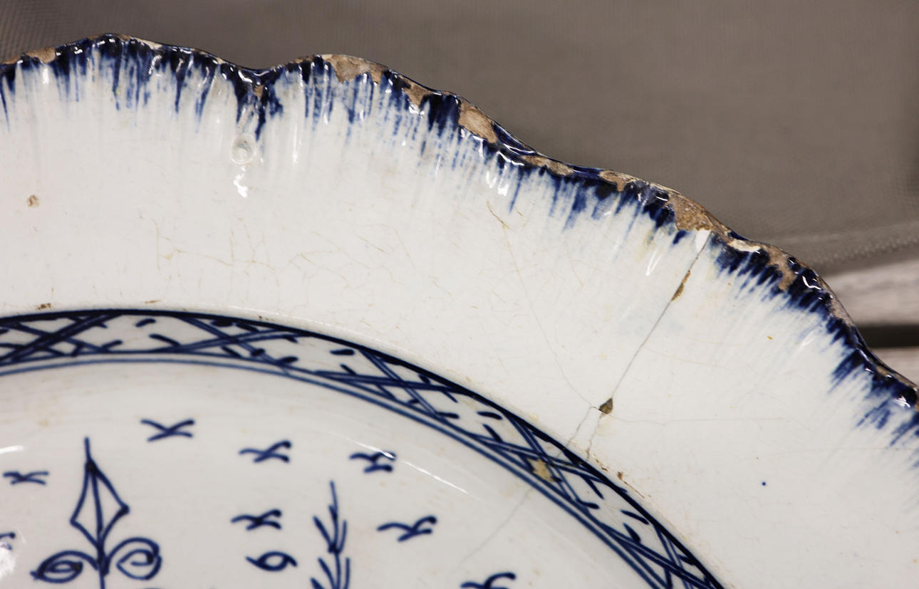 DREI BLAU-WEISSE DELFTER LADEGERÄTE. (3).