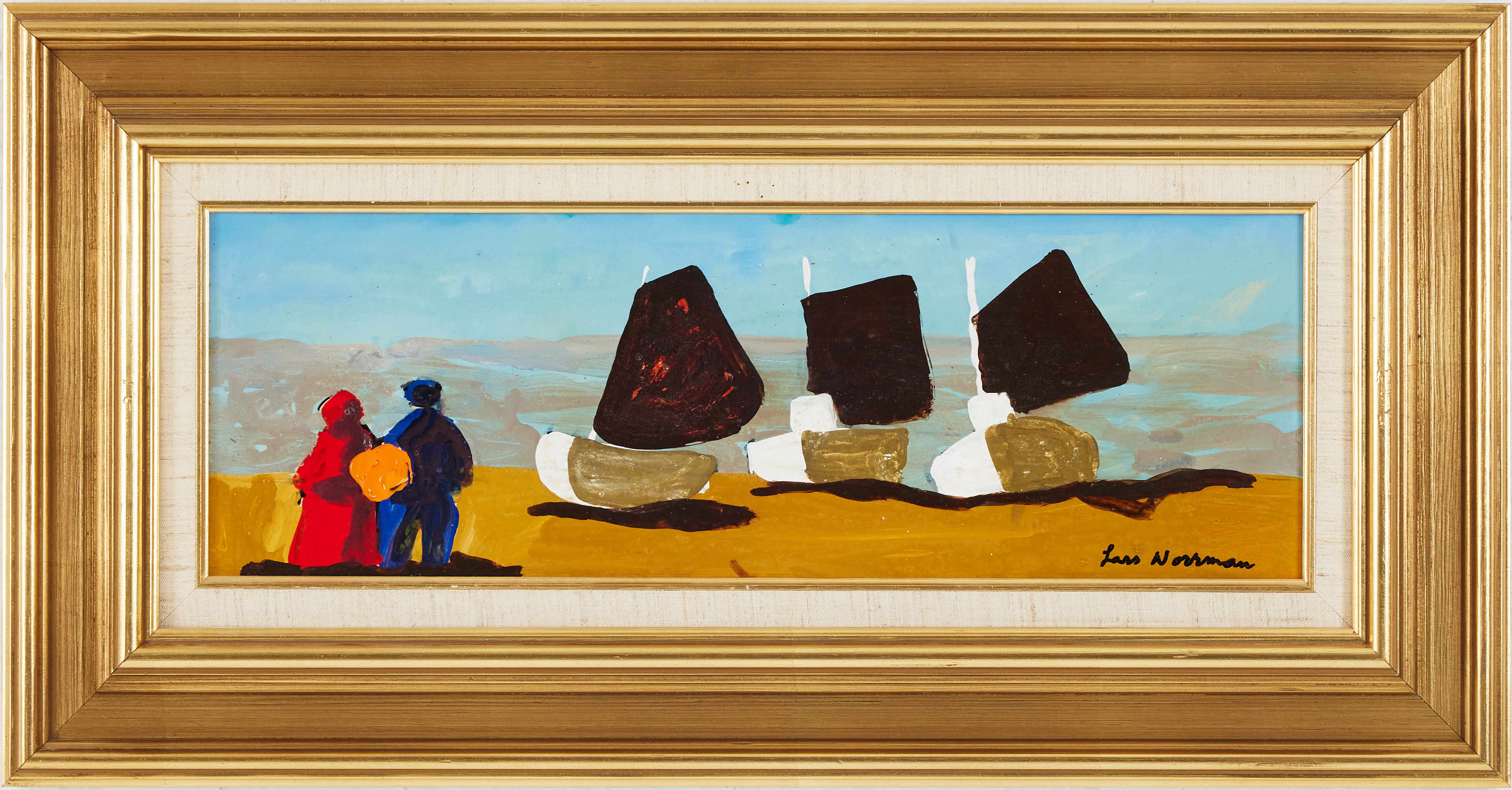 4374122. LARS NORRMAN. Küstenlandschaft mit Booten, Ölgemälde auf Tafel, signiert Lars Norrman.