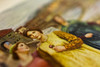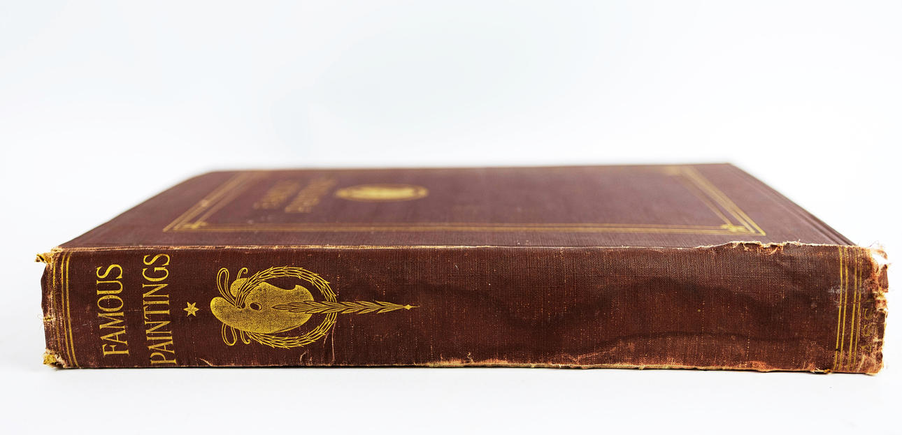 Prächtige Sammlung von Werken der Alten Meister. Einführung von G. K. Chesterton. Wunderschön illustriert mit eingekippten Farbtafeln. Zu den Künstlern gehören unter anderem Botticelli, Gore, Millet, Rembrandt, Tizian und Turner. Kastanienbraune Stoffeinbände mit vergoldetem Kranzmotiv auf Vorder- und Rückseite, außerdem vergoldeter Schriftzug und lineare Ränder. 38 cm hoch.