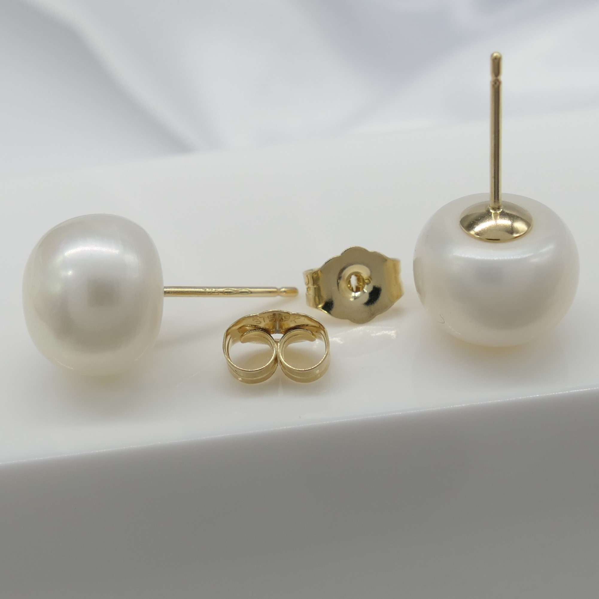 4376012. ZUCHTPERLENOHRSTECKER, Gelbgold.