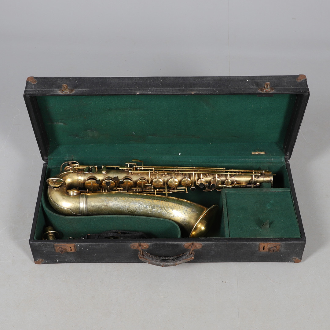 4377728. EIN SAXOPHON MIT BLECHGEHÄUSE.