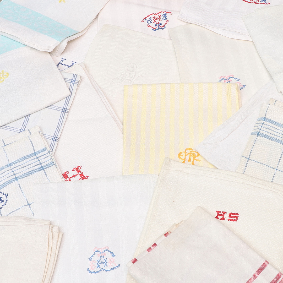 4378898. HANDTÜCHER, ca. 85 Stück, Leinen und Baumwolle.