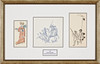 Mischtechnik, 3 Stück, mitgerahmt, unterschiedliche Größen 20 x 10 cm bis 16 x 8 cm. Rahmenmaße 40 x 60 cm. Signiert Brusewitz.