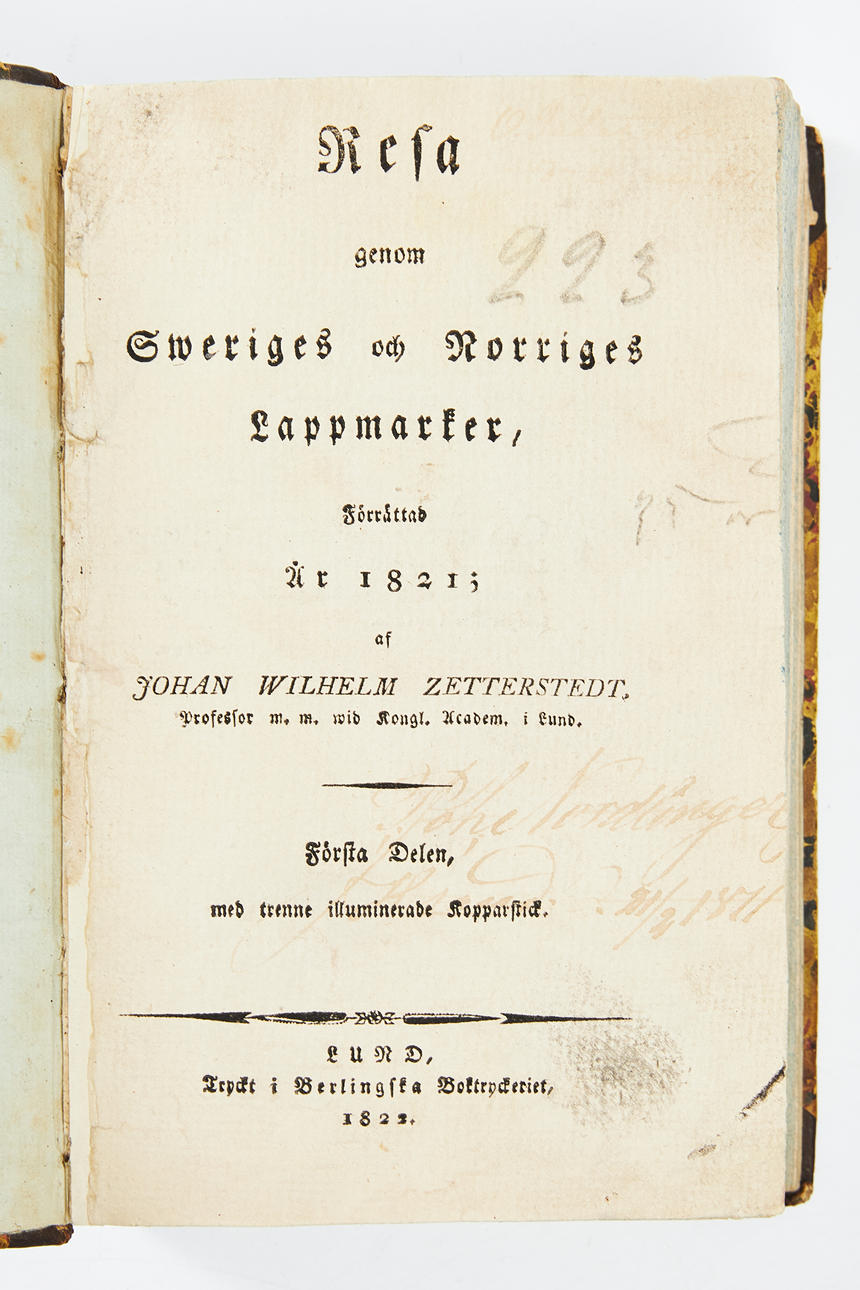 ZETTERSTEDT, JOHAN WILHELM. Reise durch das Patchland von Sweriges und Norriges, durchgeführt 1821. I-II. Lund (Berlingska boktr.) im Jahr 1822.