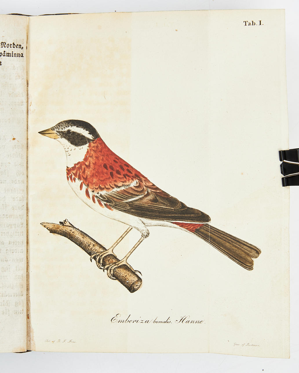 8:o. 185 x 125 mm. (4), VI, XI-XV, (1, leere Seite), (1) -266; (2), (1) -231, (1, leere Seite) S. 2 Blätter fehlen (S. VII-X), 3 faltbare handkolorierte gravierte Vogelbretter nach B. F. Fries, Nussig, fast zeitgenössisches halbfranzösisches Band, vier erhabene Bände, marmorierter Einband, gespritzte Einschnitte, die Vorder- und Nachsatzblätter fehlen, das Titelblatt am inneren Rand repariert, etwas sonnig und mit ein paar Flecken, Signatur von 1871 auf dem Titelblatt. Einlegeflecktes Inlay, eine der Planchen teilweise sonnig. Ibring 458, Schiötz 1215.