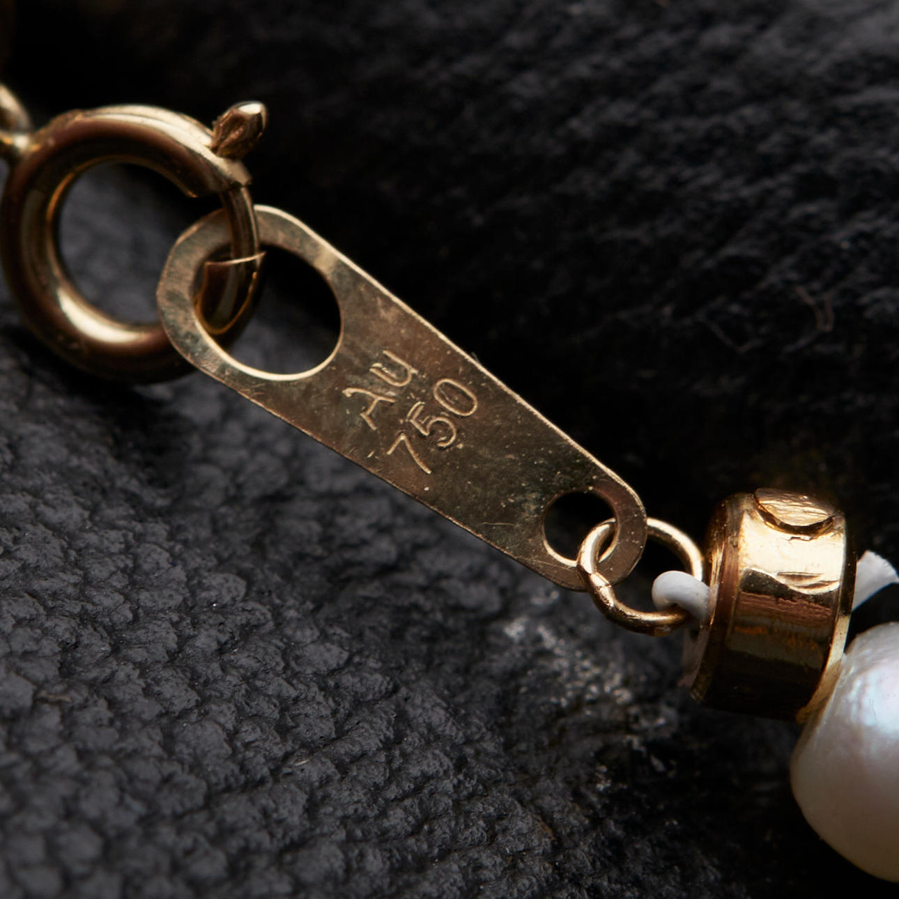 Kette gefertigt aus 750er Gold und Akoya Perlen, mit Karabinerschließe, punziert, L.43,5cm, Ø 3,8mm, Gesamtgewicht: 9,25g.