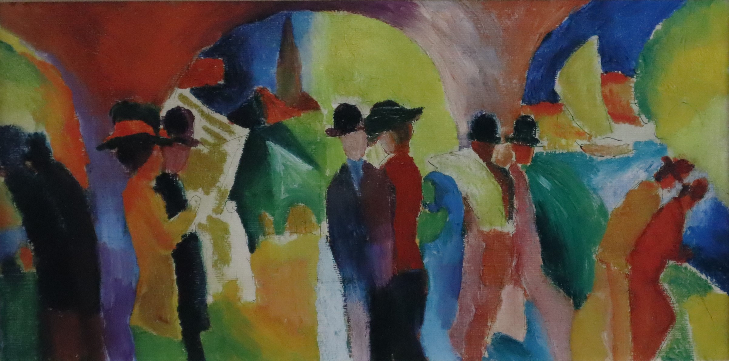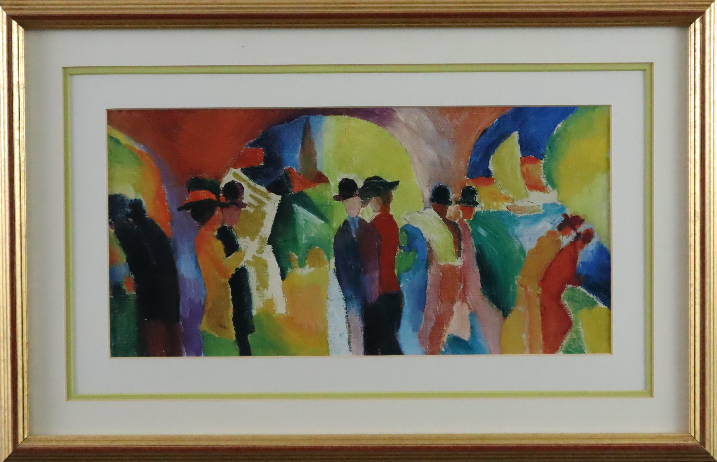 4381011. - MACKE, AUGUST. NACH. - Kolonnade mit Segelboot, Farboffsetdruck.