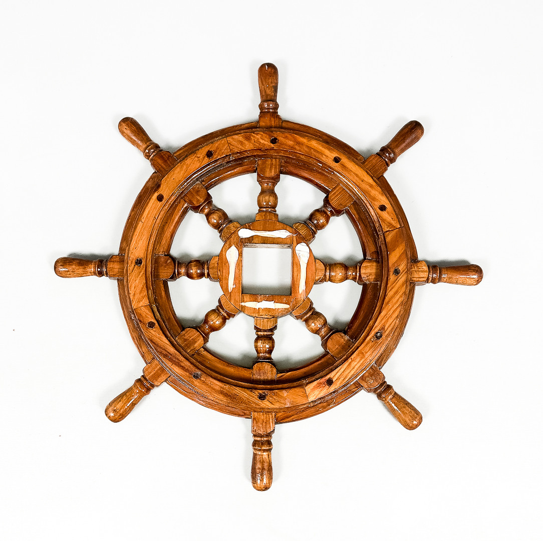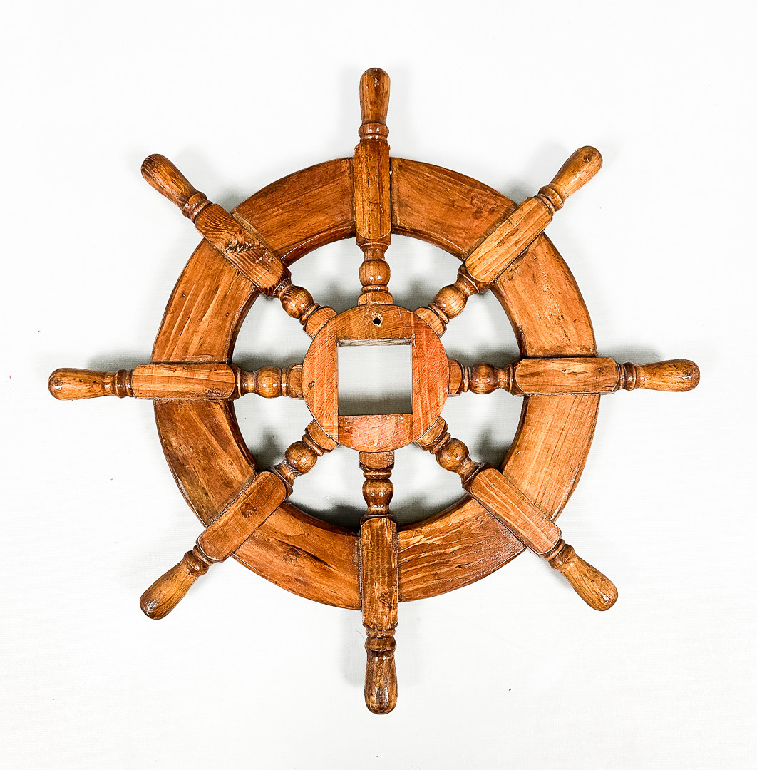 4381405. Bootslenkrad aus Holz, 20. Jahrhundert.