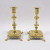 Zwei ähnliche Kerzenhalter mit leichten Unterschieden. Höhe: ca. 19 cm.