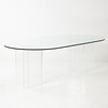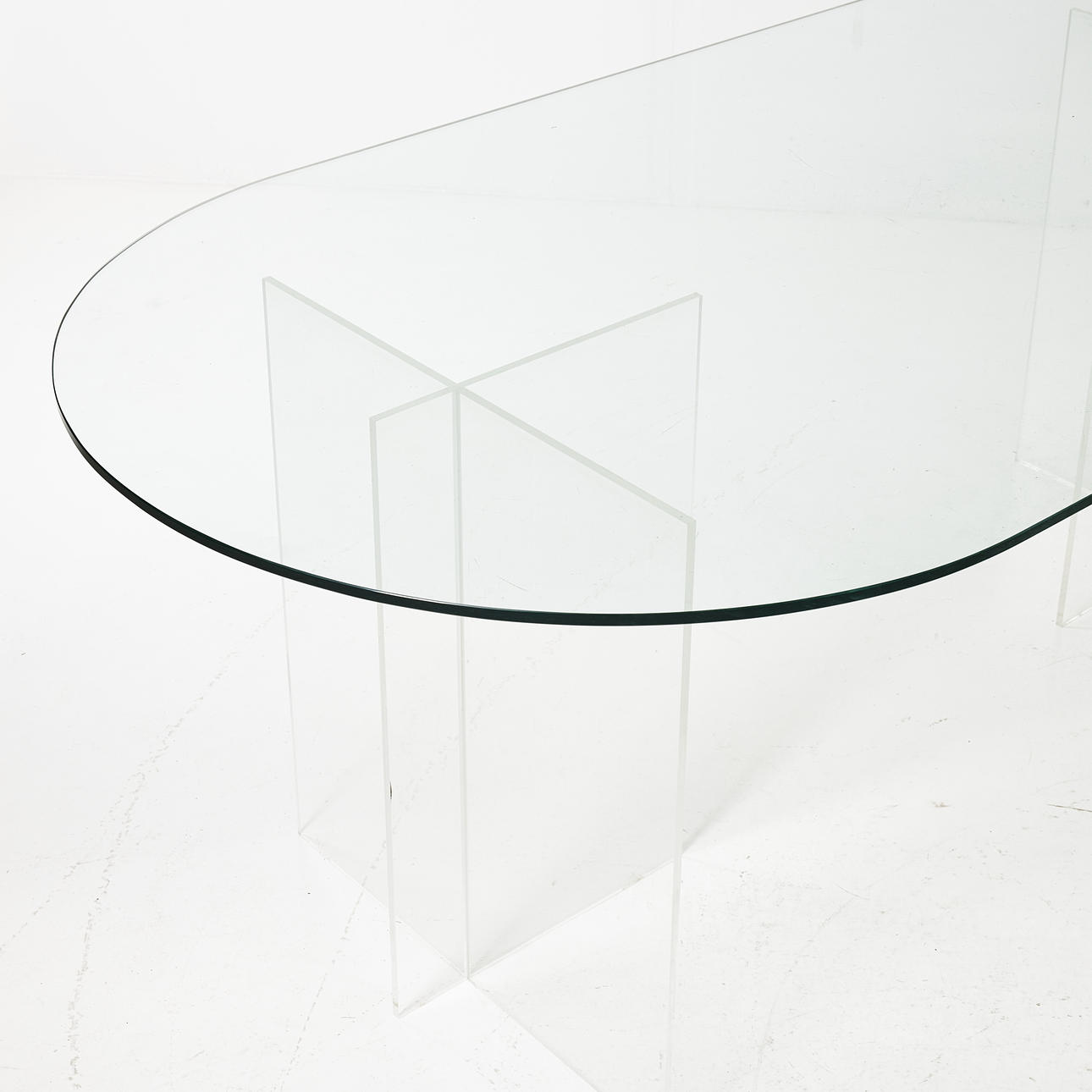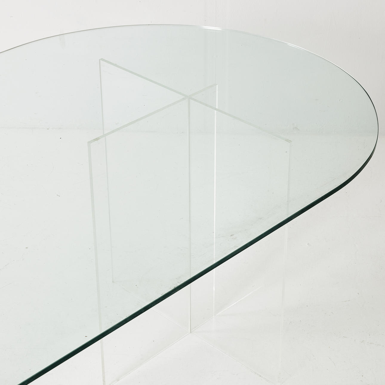 4381923. Ein Plexi-Esstisch, Buntglasplatte, späte Hälfte des 20. Jahrhunderts.