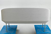 Polsterrahmen Stahl. Beine aus pulverbeschichtetem Aluminium. Stoff in grau.