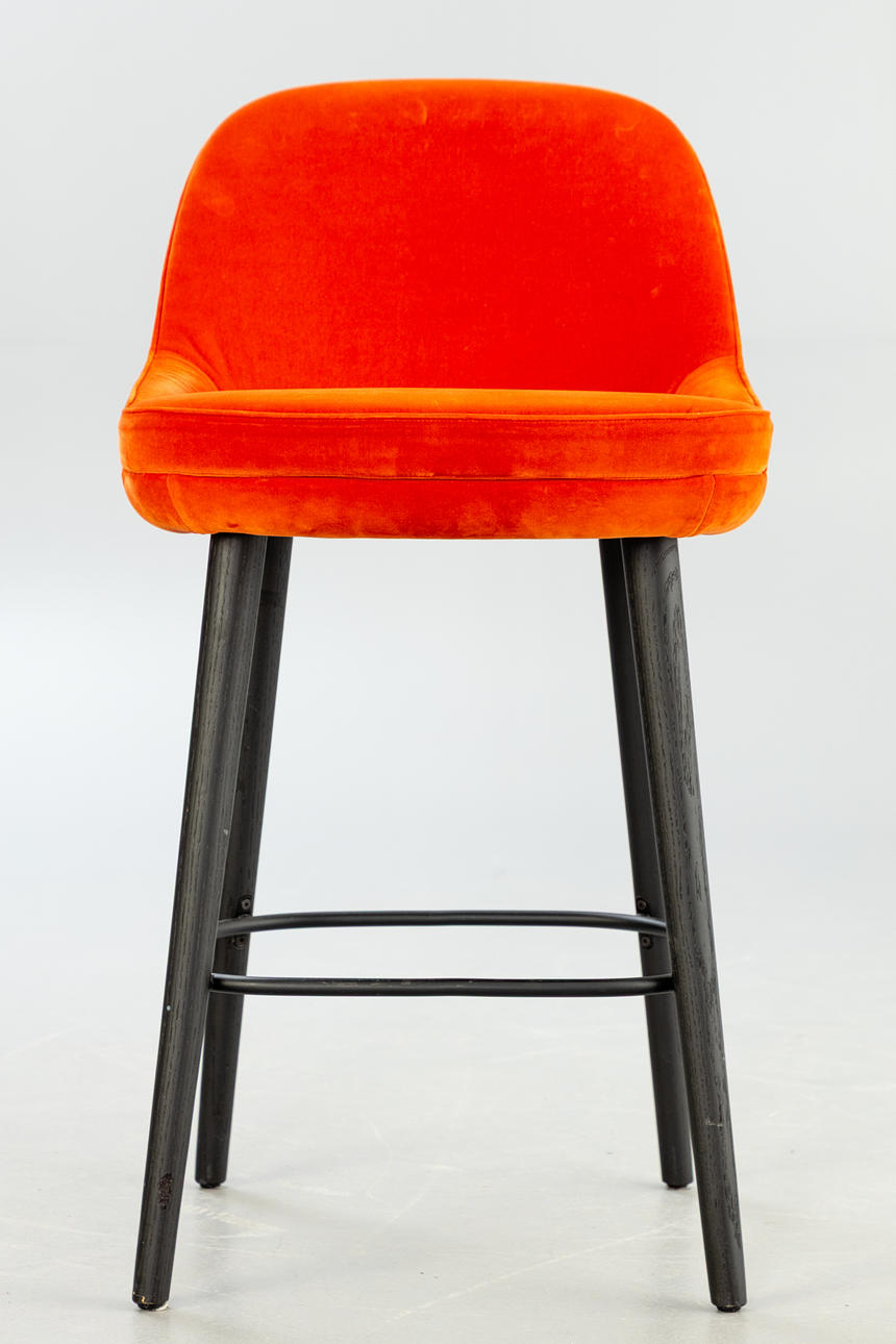 4382049. Walter Knoll, Barhocker mit rotem Samt, Modell 375.