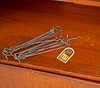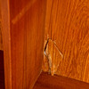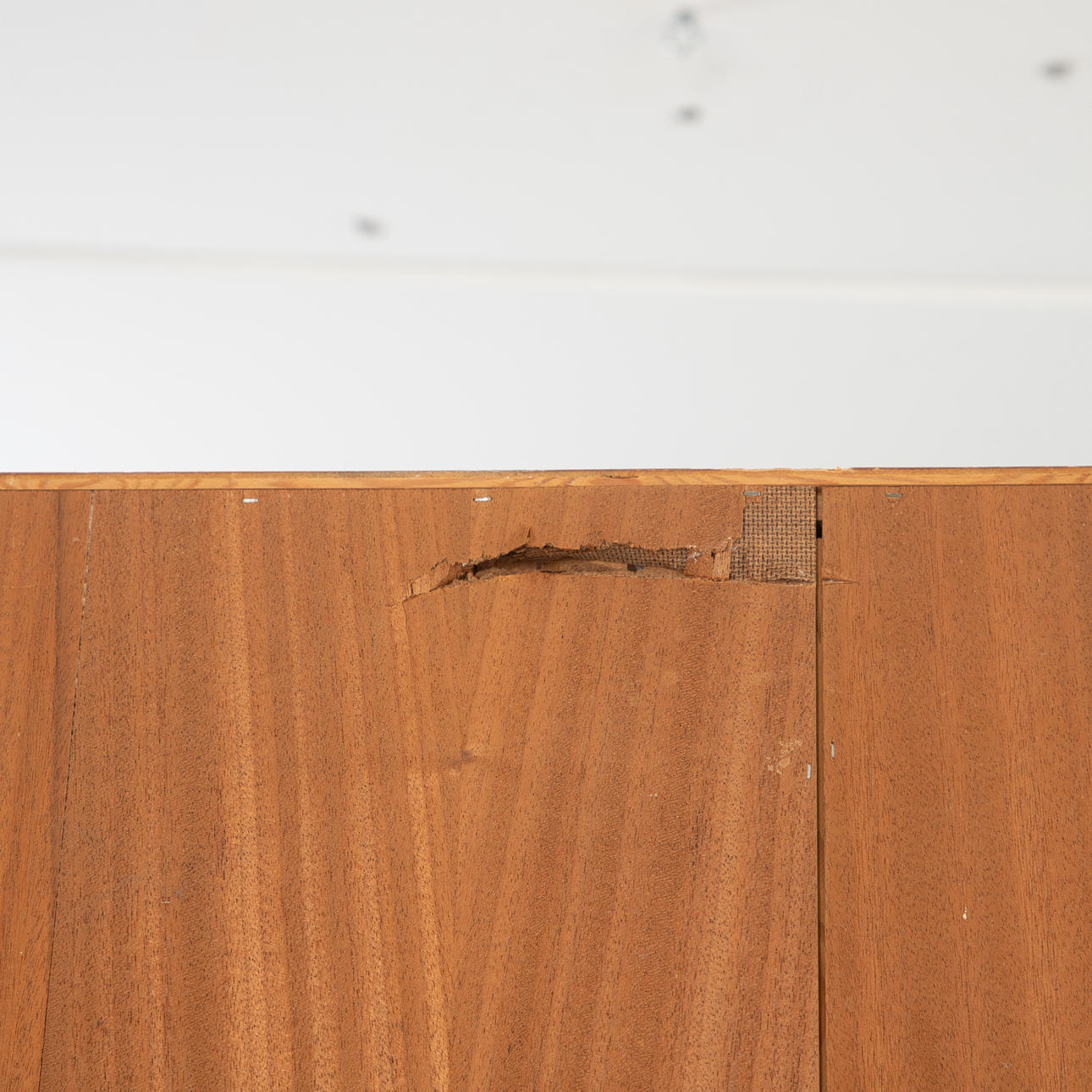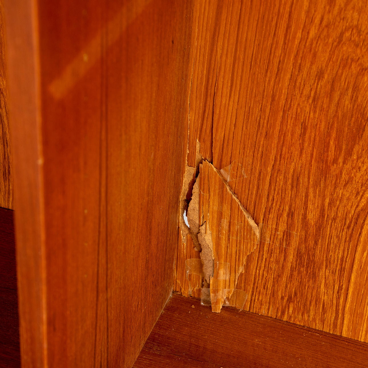Rückwand am breiten Regal zweifach beschädigt. Stellenweise Kratzer. Leicht muffiger Geruch.