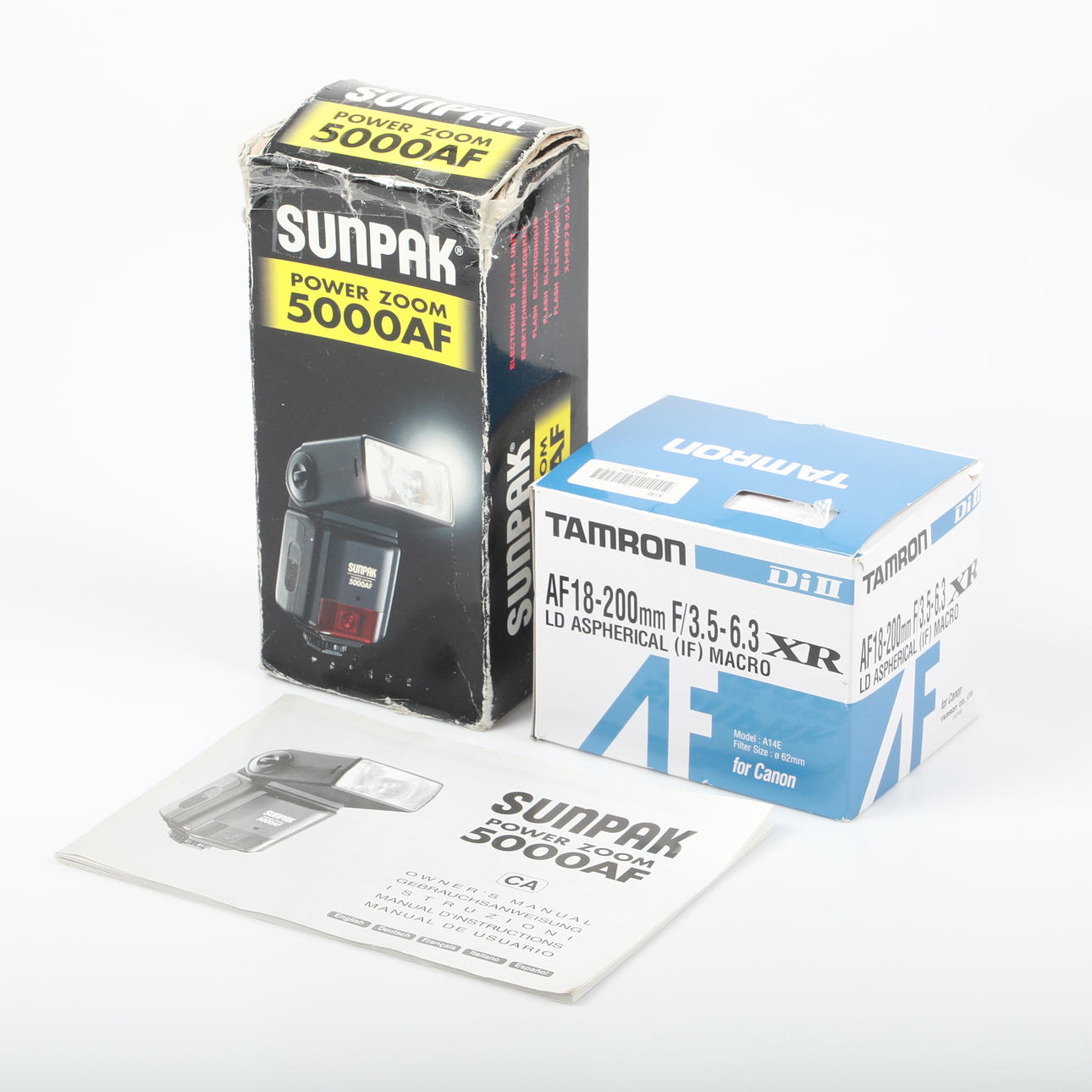 Unbenutzte Objektive, Blitz und Filter, funktionstüchtiger Zustand, nicht funktionsgeprüft.