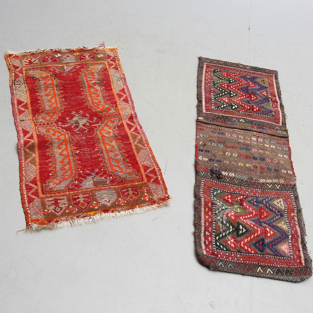 438397. SATTELTASCHE und TEPPICH, orientalisch.