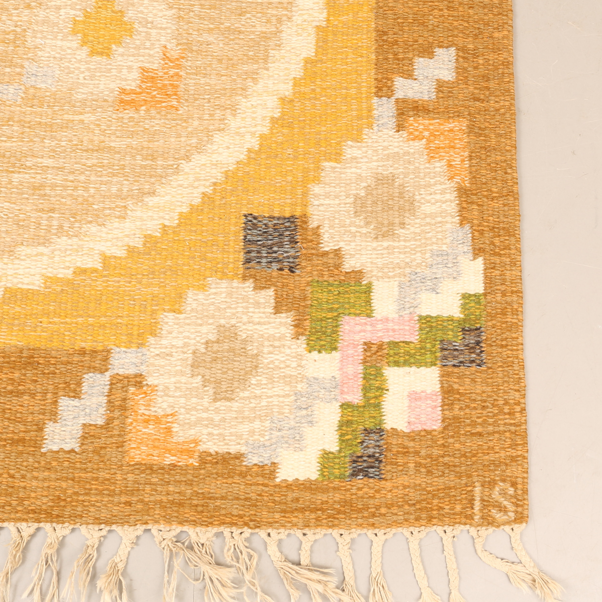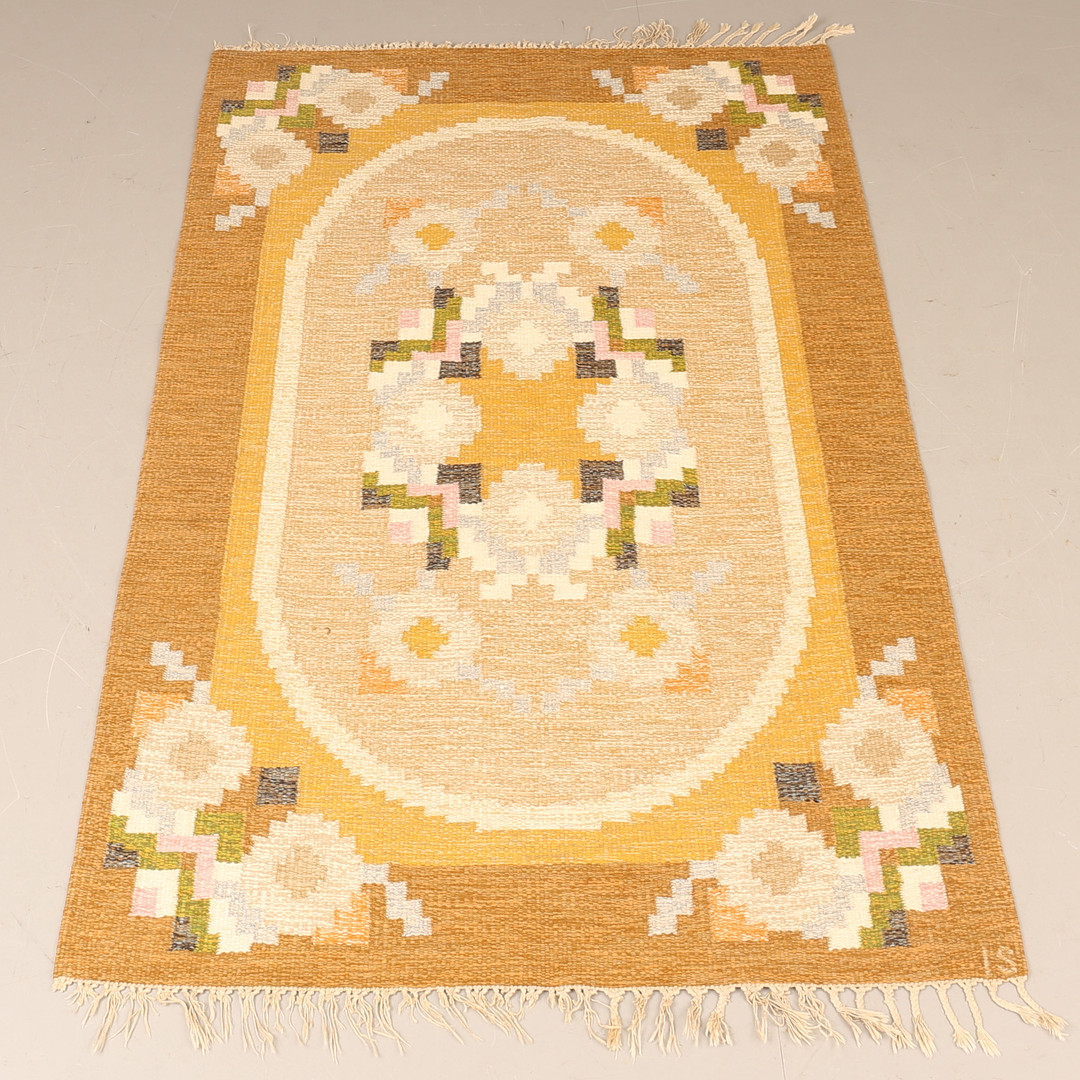 4384457. INGEGERD SILOW. Teppich, Korbgeflecht, signiert IS.