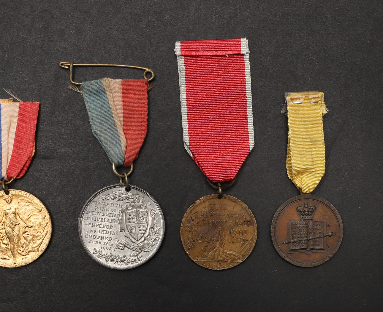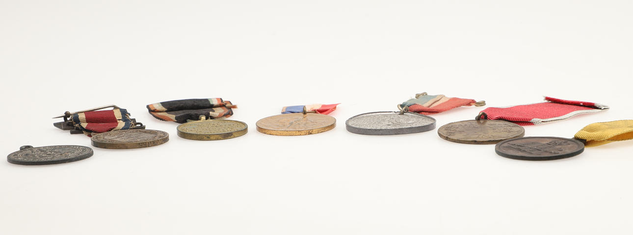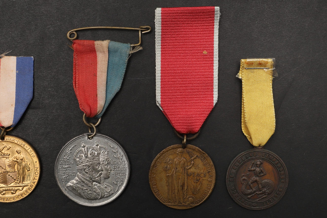 Eine Medaille „Der Große Kriegsfrieden wurde im Juni 1919 ausgerufen“, eine Mäßigkeitsmedaille, eine Krönungsmedaille und andere inoffizielle Medaillen.