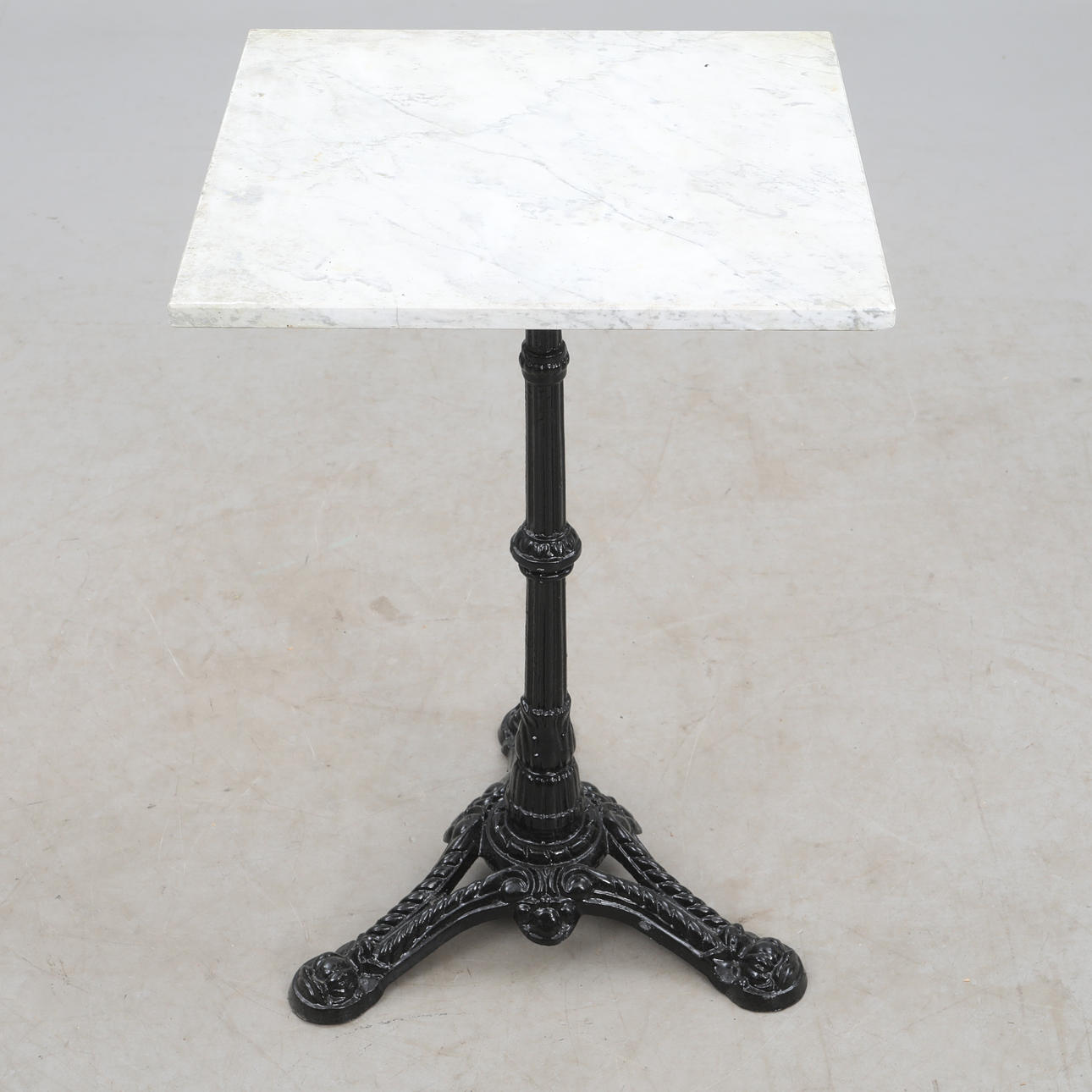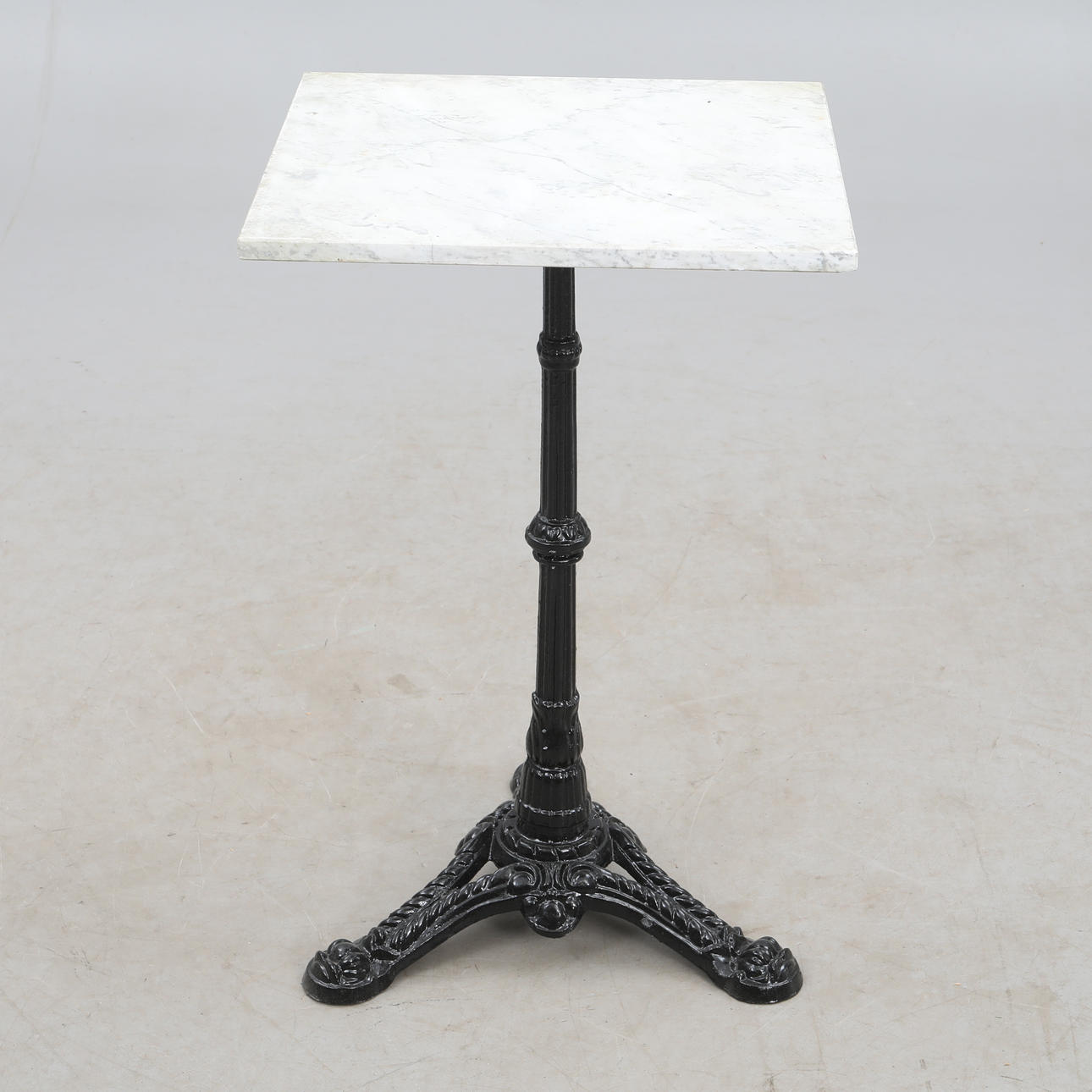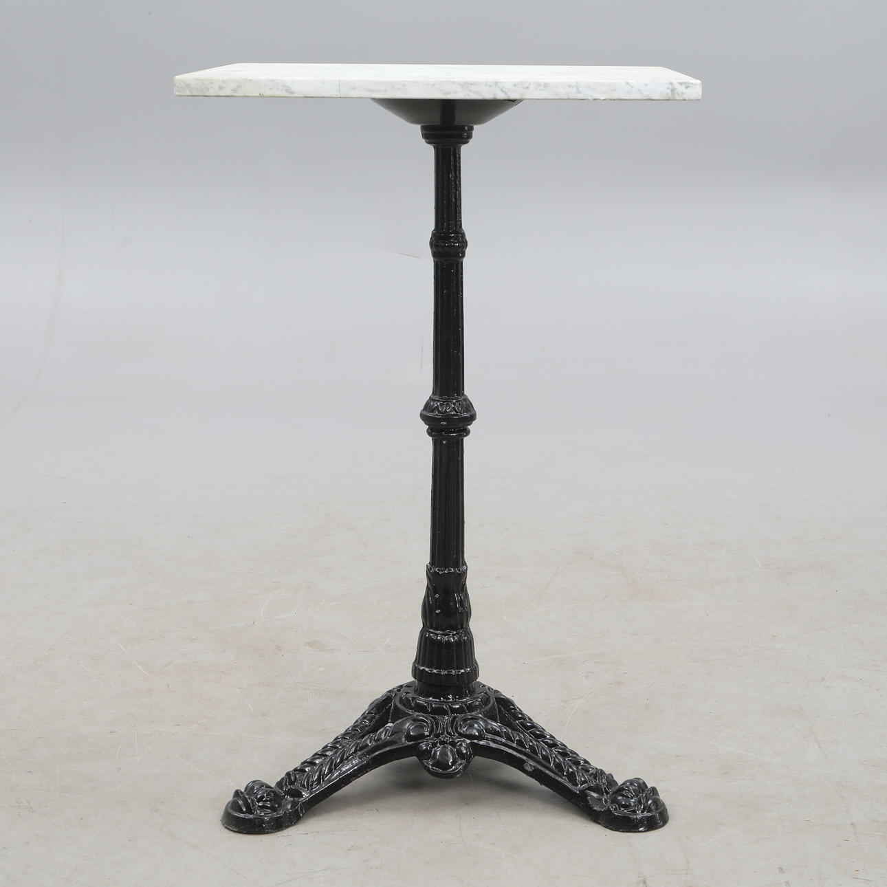 4384700. GARTENTISCH/ SÄULENTISCH, Gusseisen mit Steinplatte.