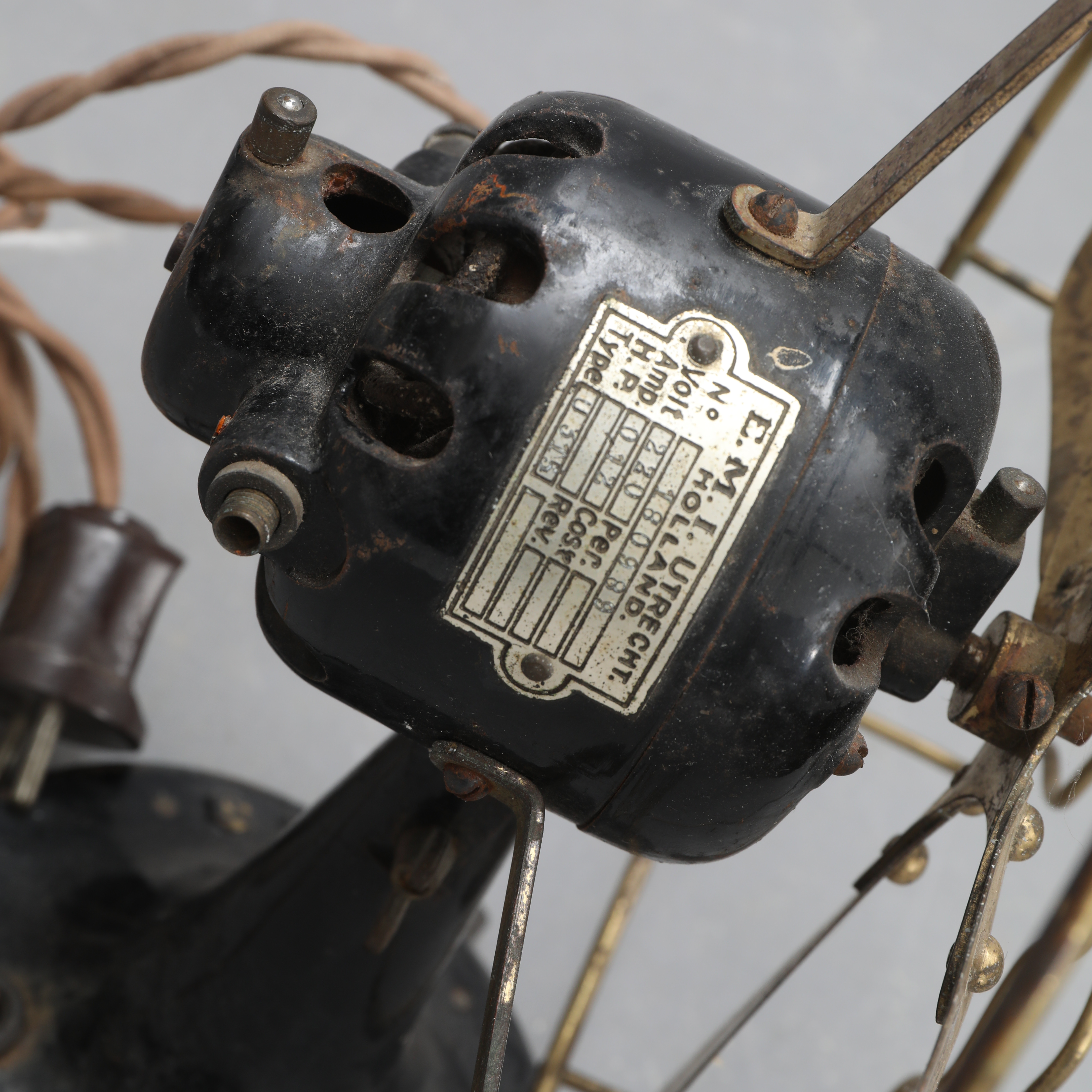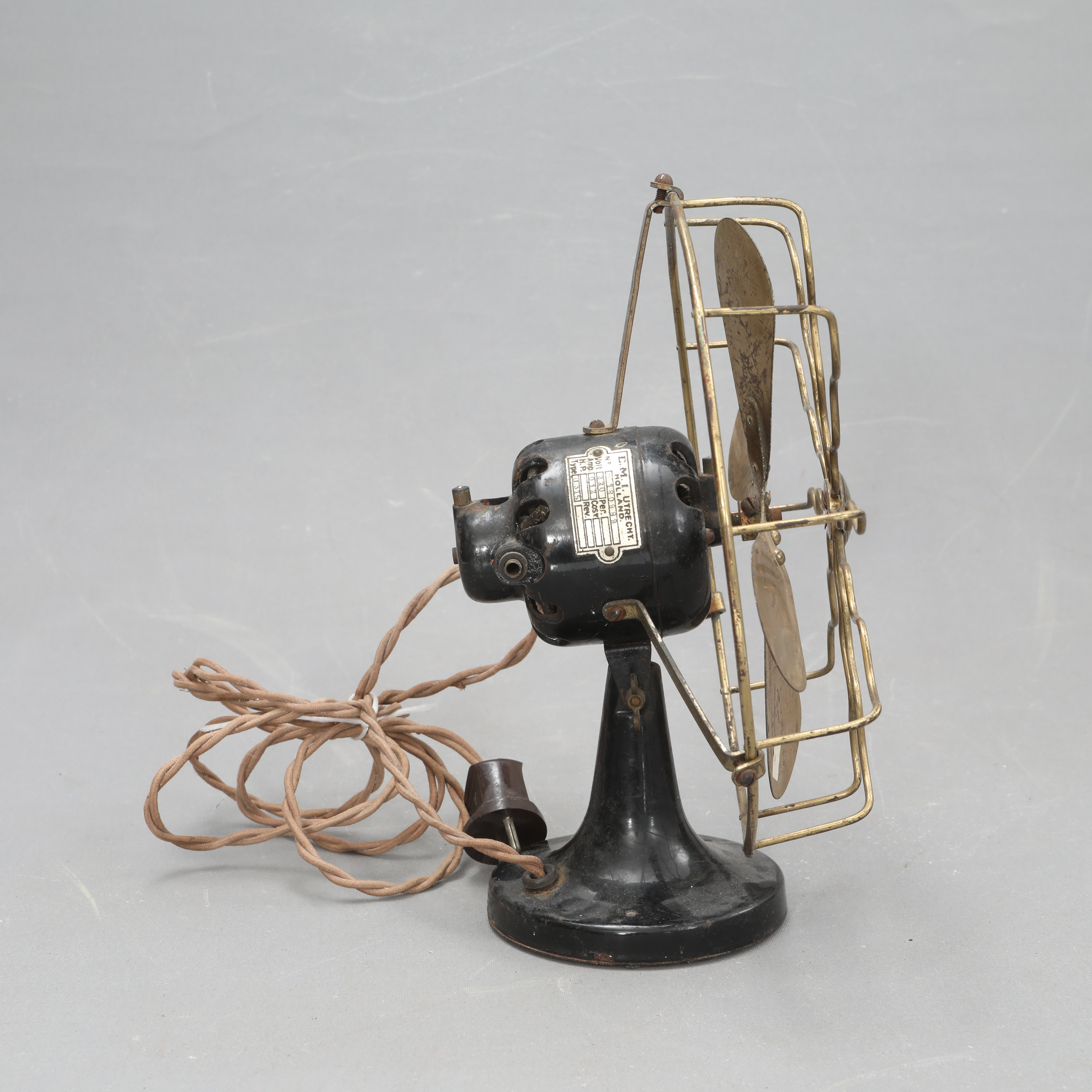 4385208. Ein Tischventilator, E.M.I, Utrecht, frühes 20. Jahrhundert.
