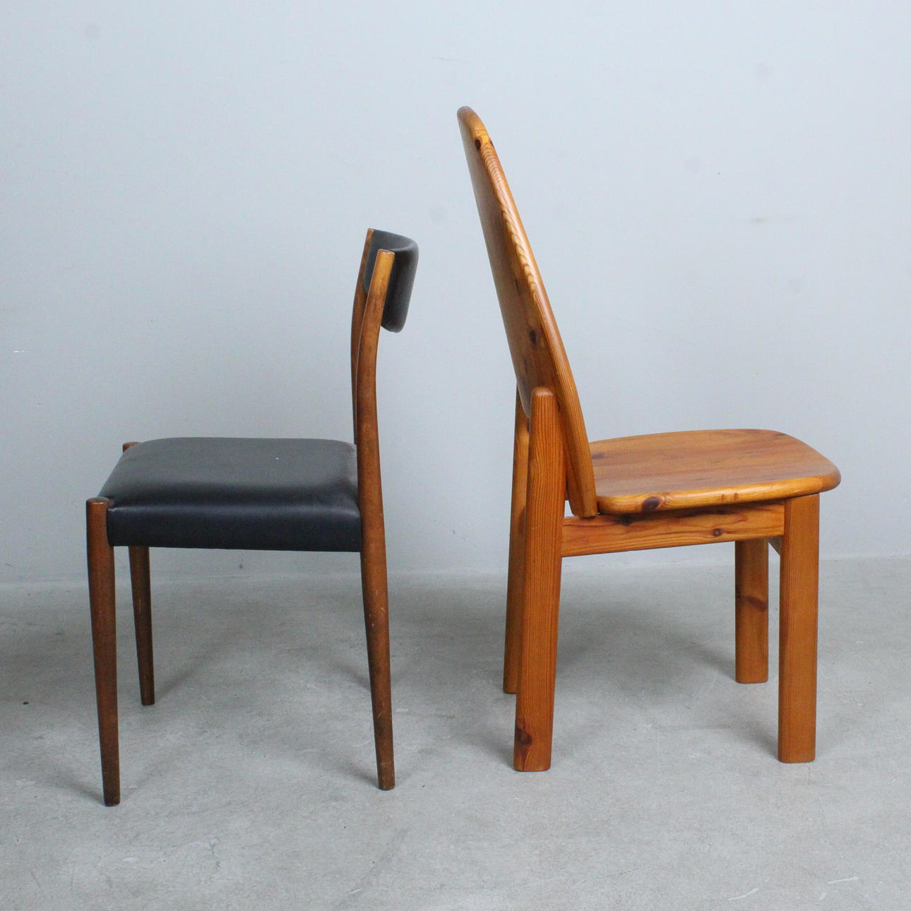 Zwei Stühle der 1970er gefertigt aus Holz, Kiefernholz. Kunstleder