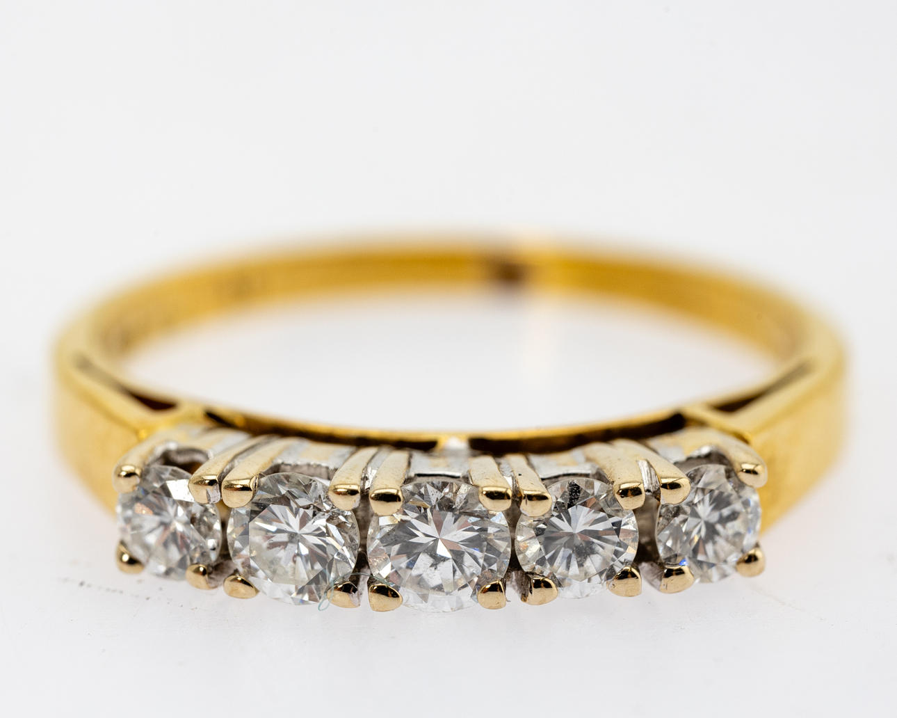 Konvolut bestehend aus 2 Ringe gefertigt aus 750er Gold. 1 Ring besetzt mit 5 Diamanten insgesamt von ca. 0.48 ct, 1 Ring besetzt mit einem Diamant insgesamt von ca. 0.04 ct. Ringgröße ca. 50 - 53. Gesamtgewicht ca. 8,2 Gramm.
