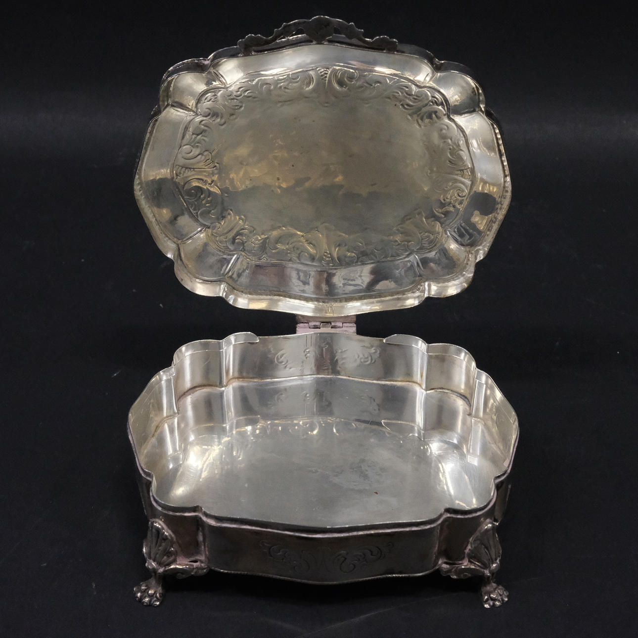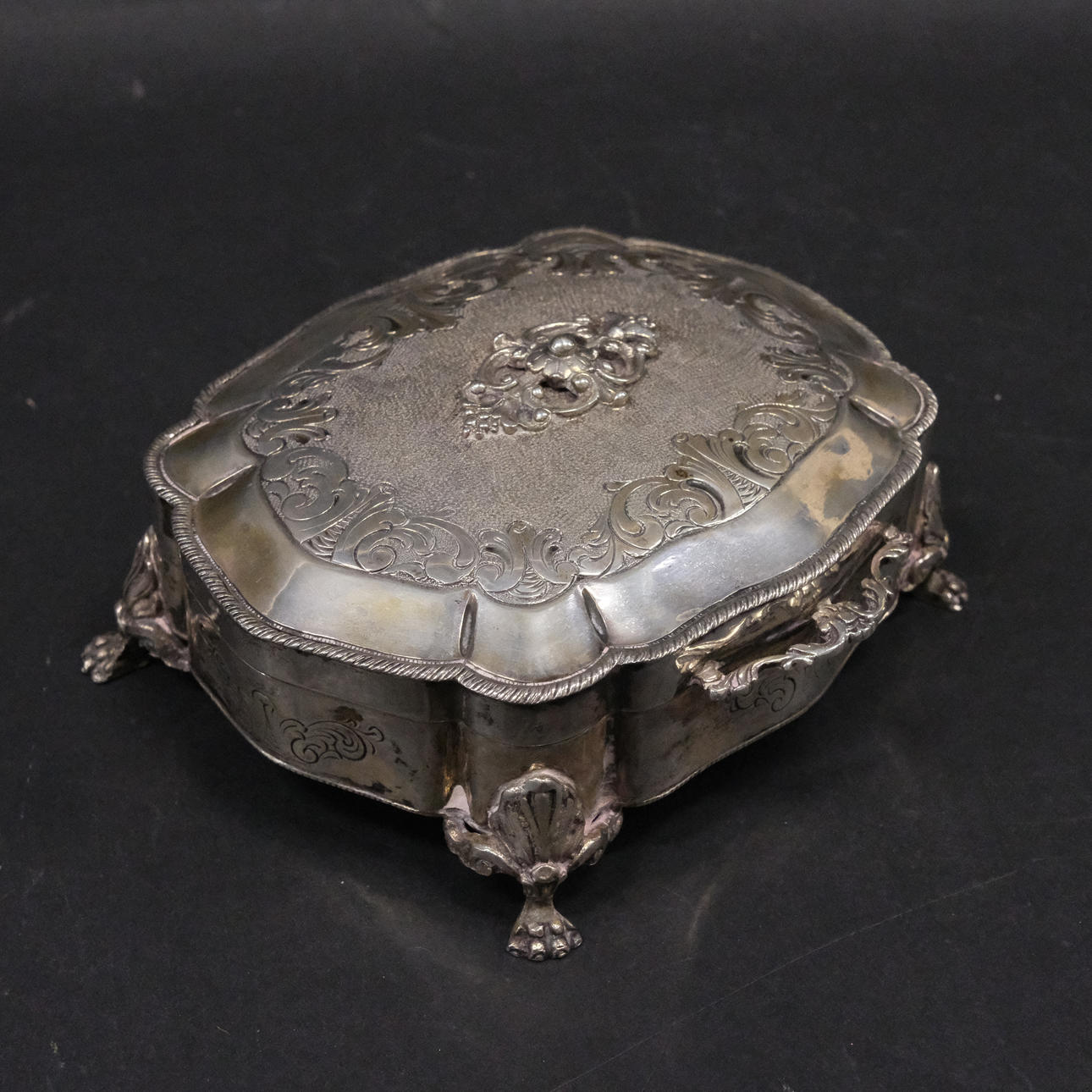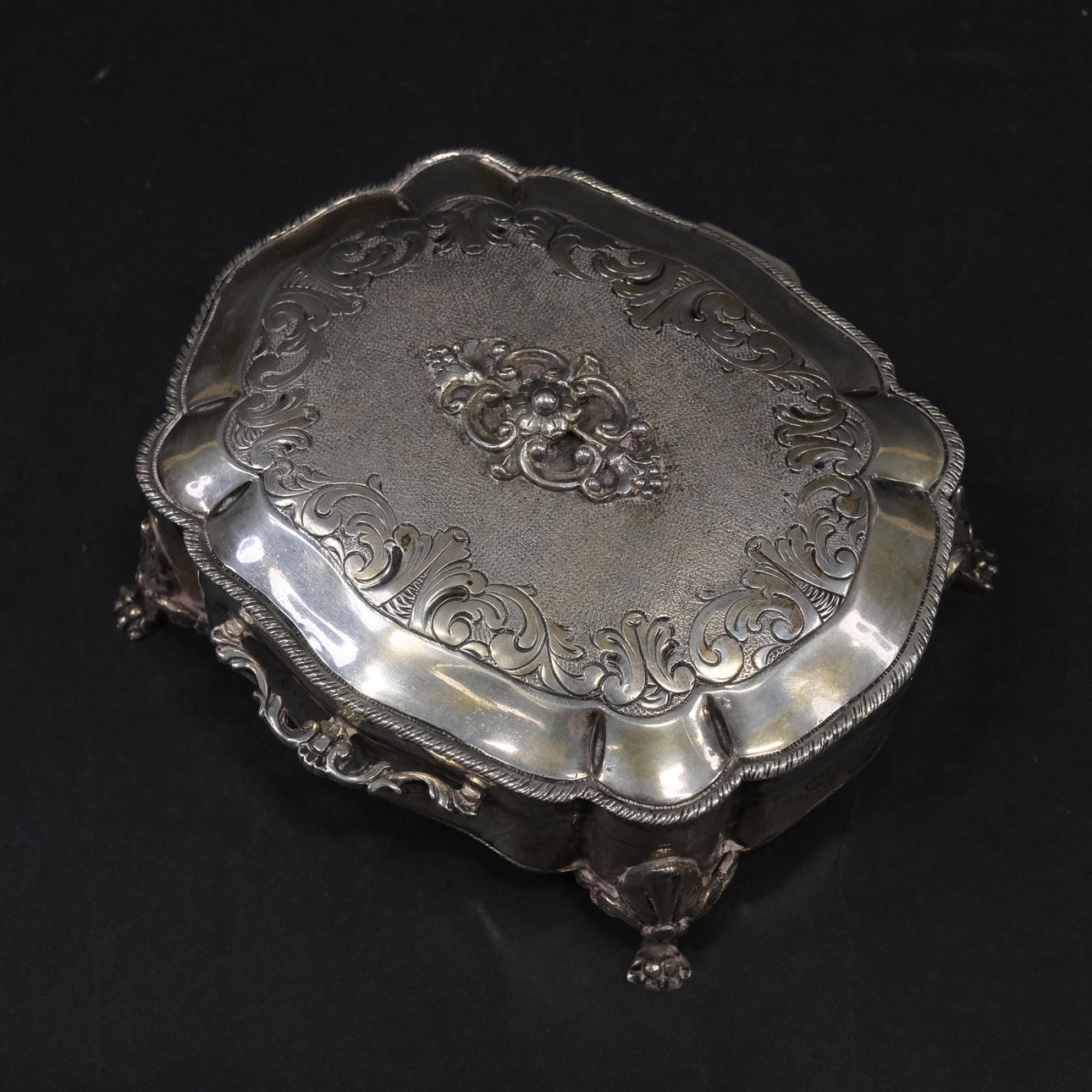 4387884. ZUCKERDOSE AN DEN FÜSSEN. SILBER.
