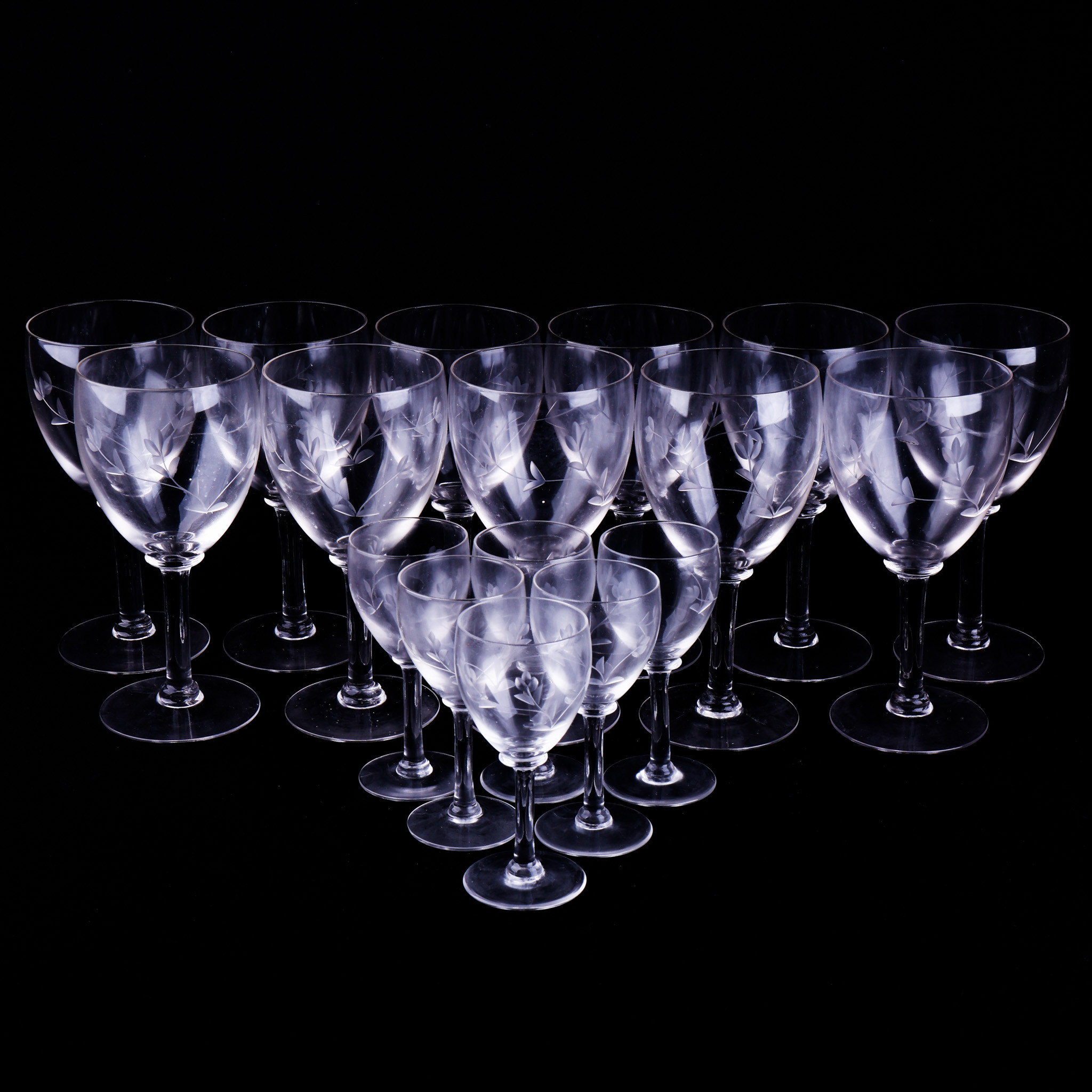 4388566. GLAS, 17-teilig, geätztes Dekor.