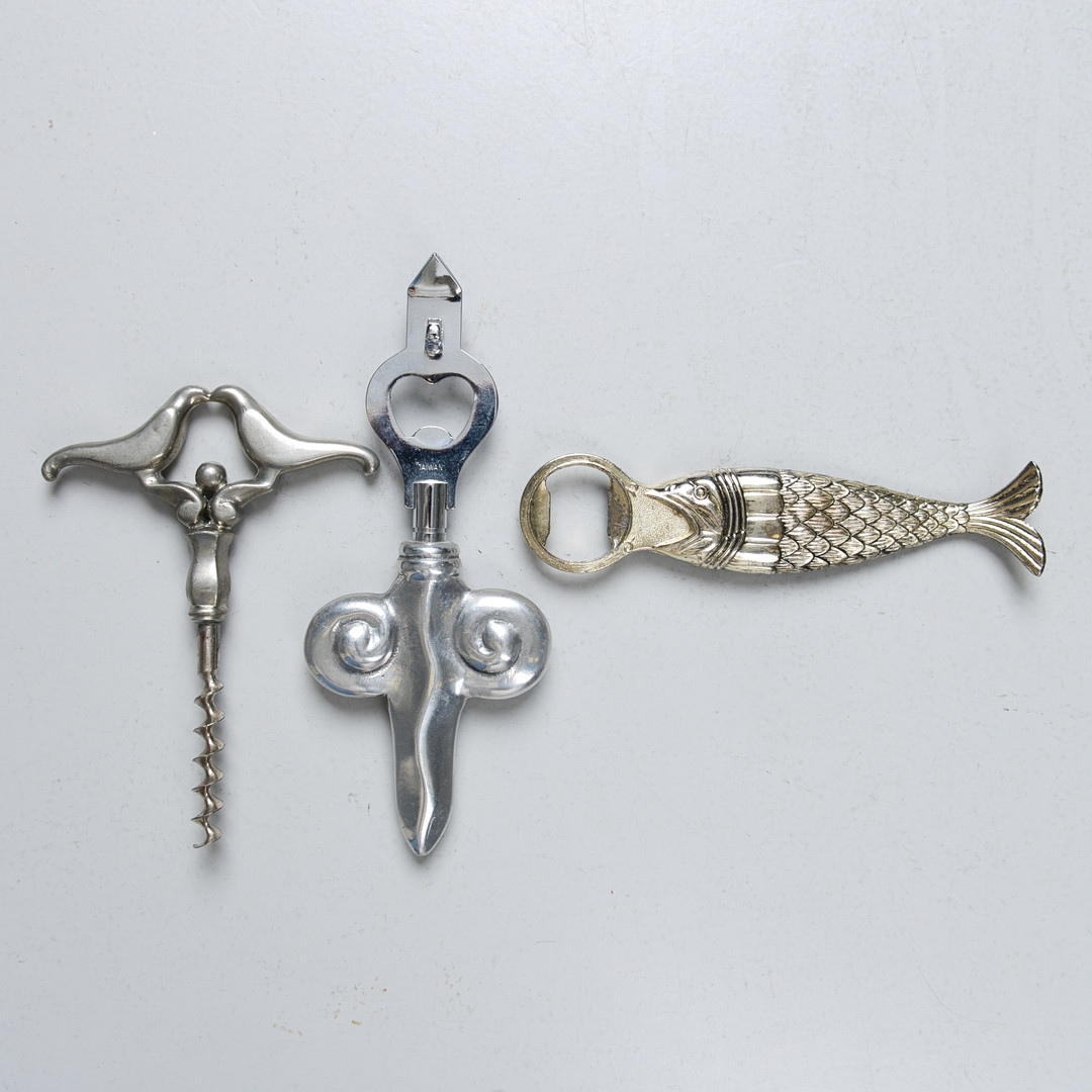 4388818. FLASCHENÖFFNER, 3 Stück, Weißmetall.