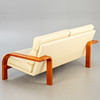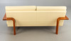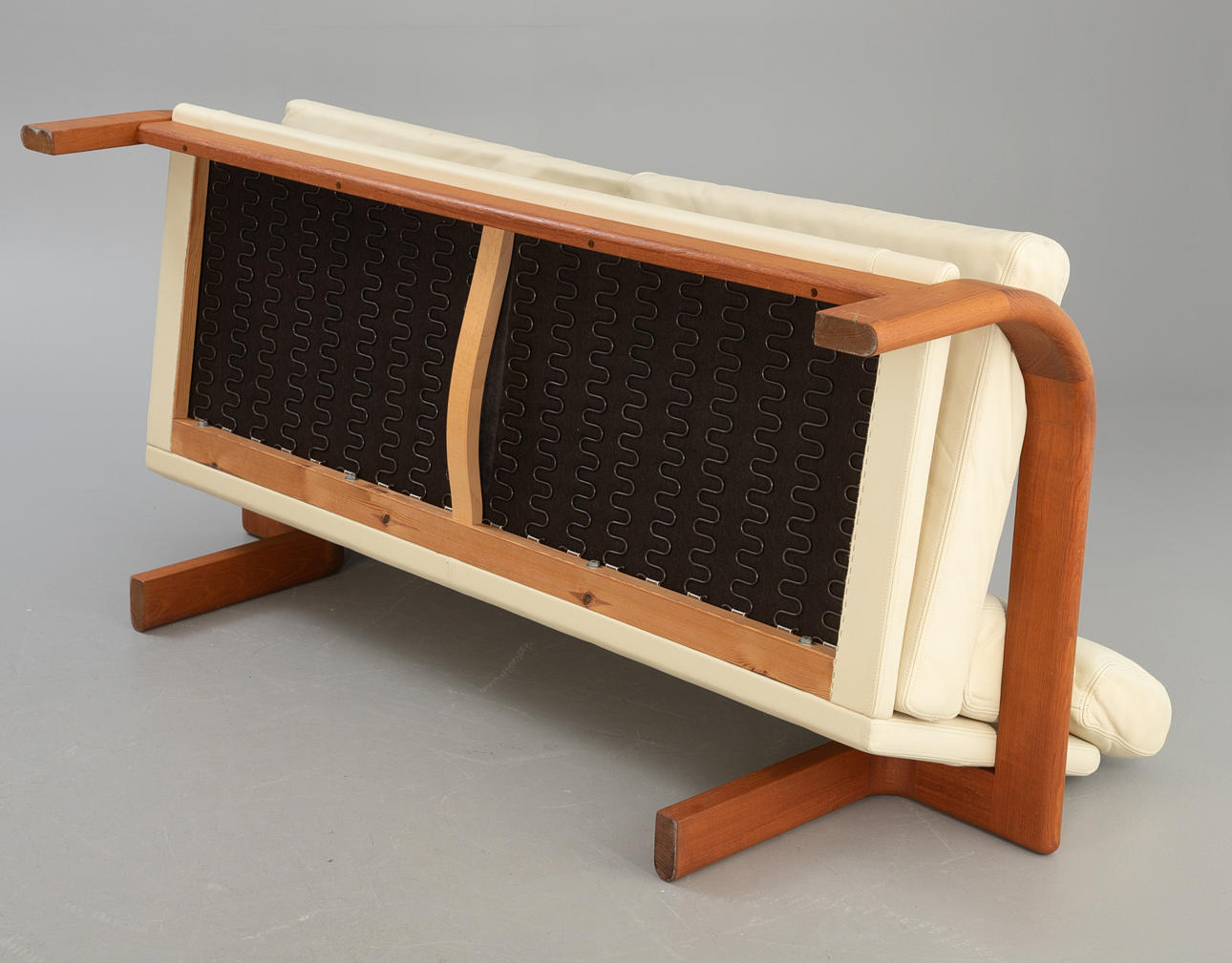 Massives Teakholz, gepolstert und mit creme-weißem Leder bezogen.