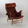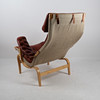 BRUNO MATHSSON. Sessel, Buche „Pernilla“, Leinwand, Leder, DUX.