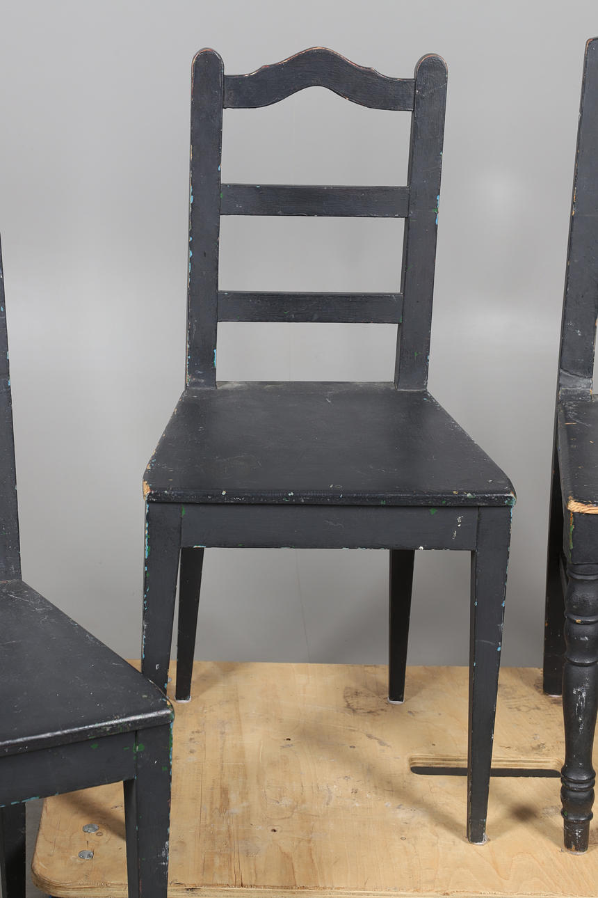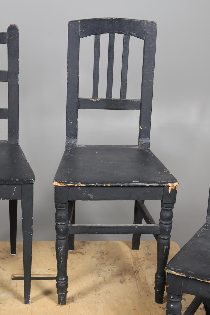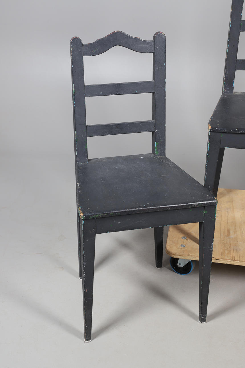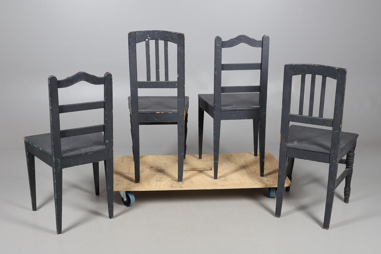 4391765. EIN PASSENDES SET VON VIER BEMALTEN STÜHLEN.